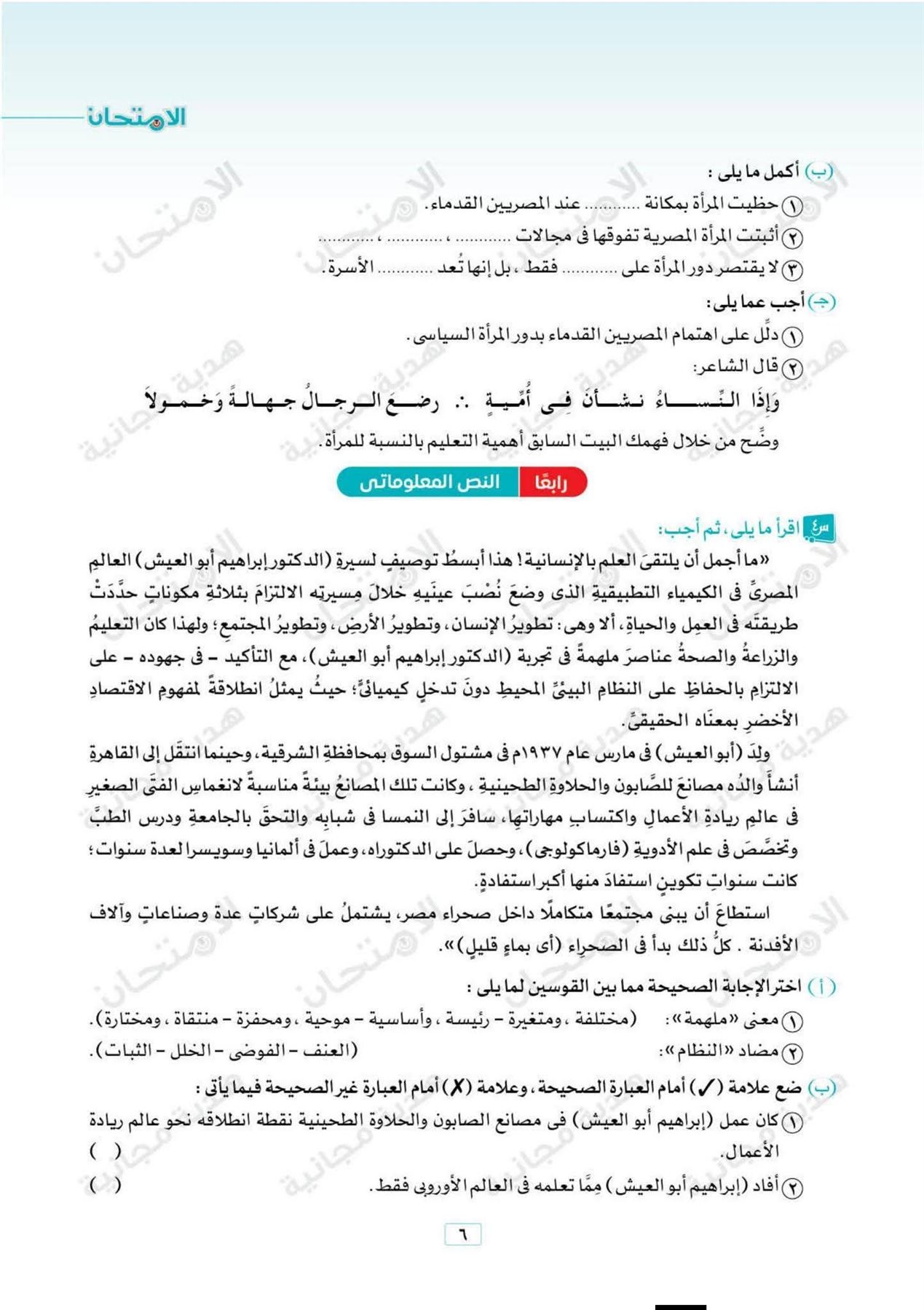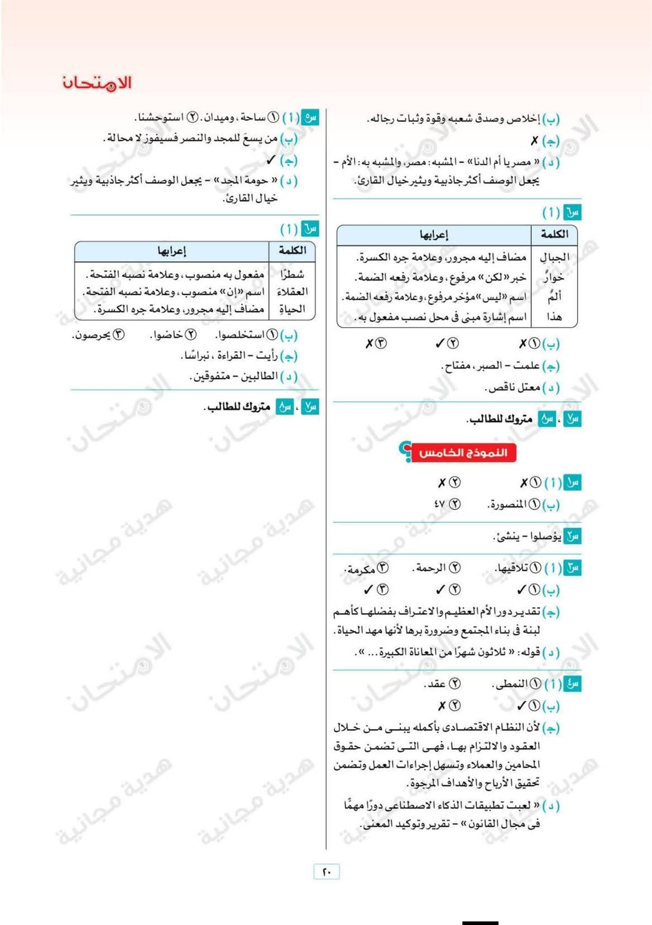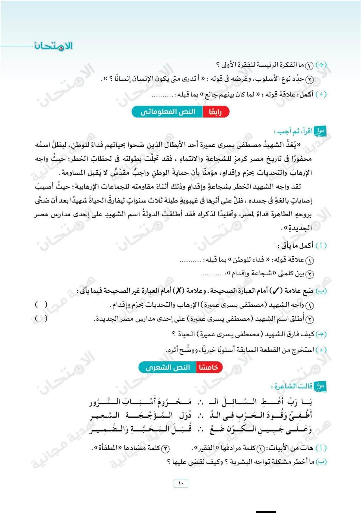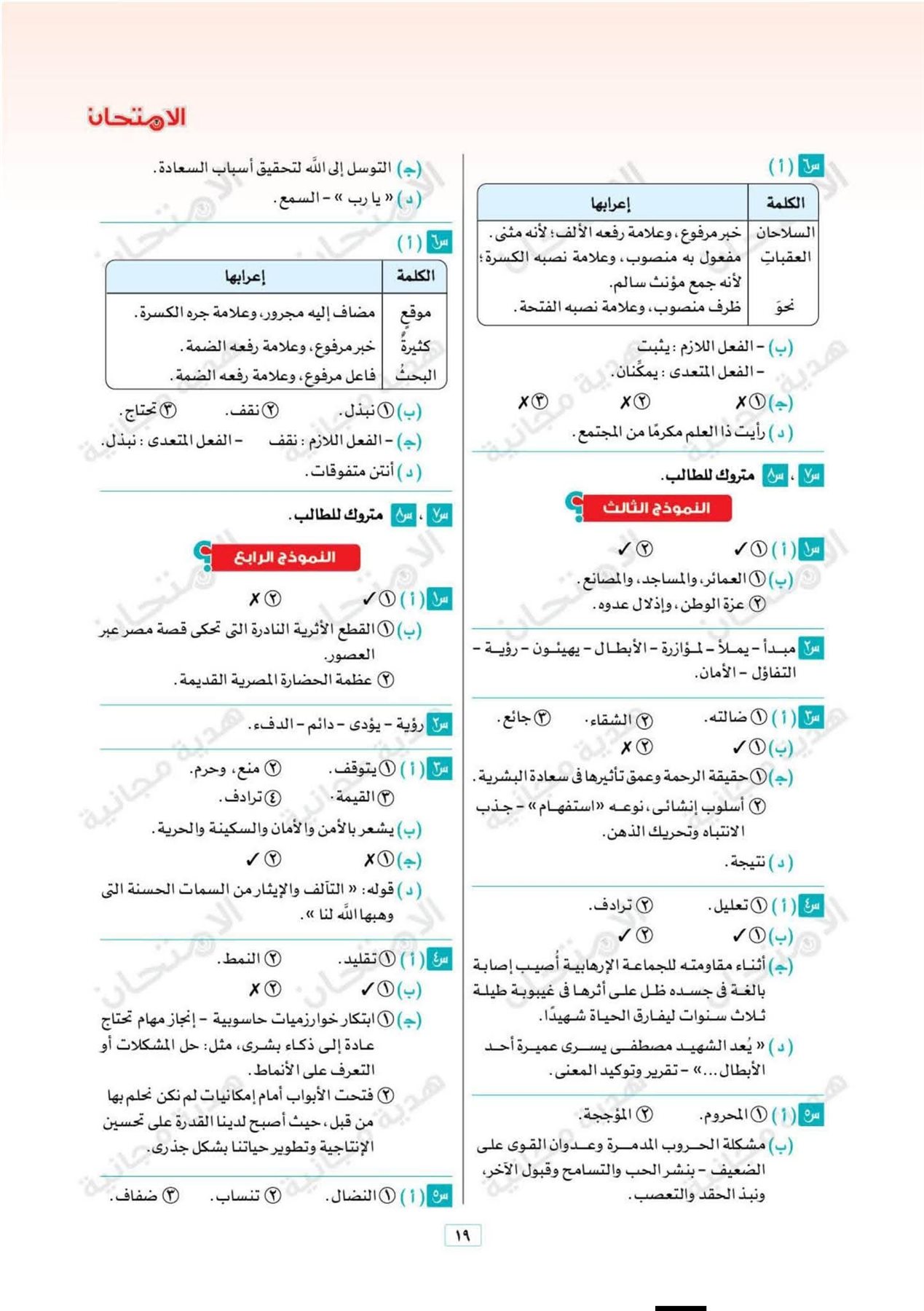 - نماذج امتحانات عربي الصف الأول الإعدادي محلولة