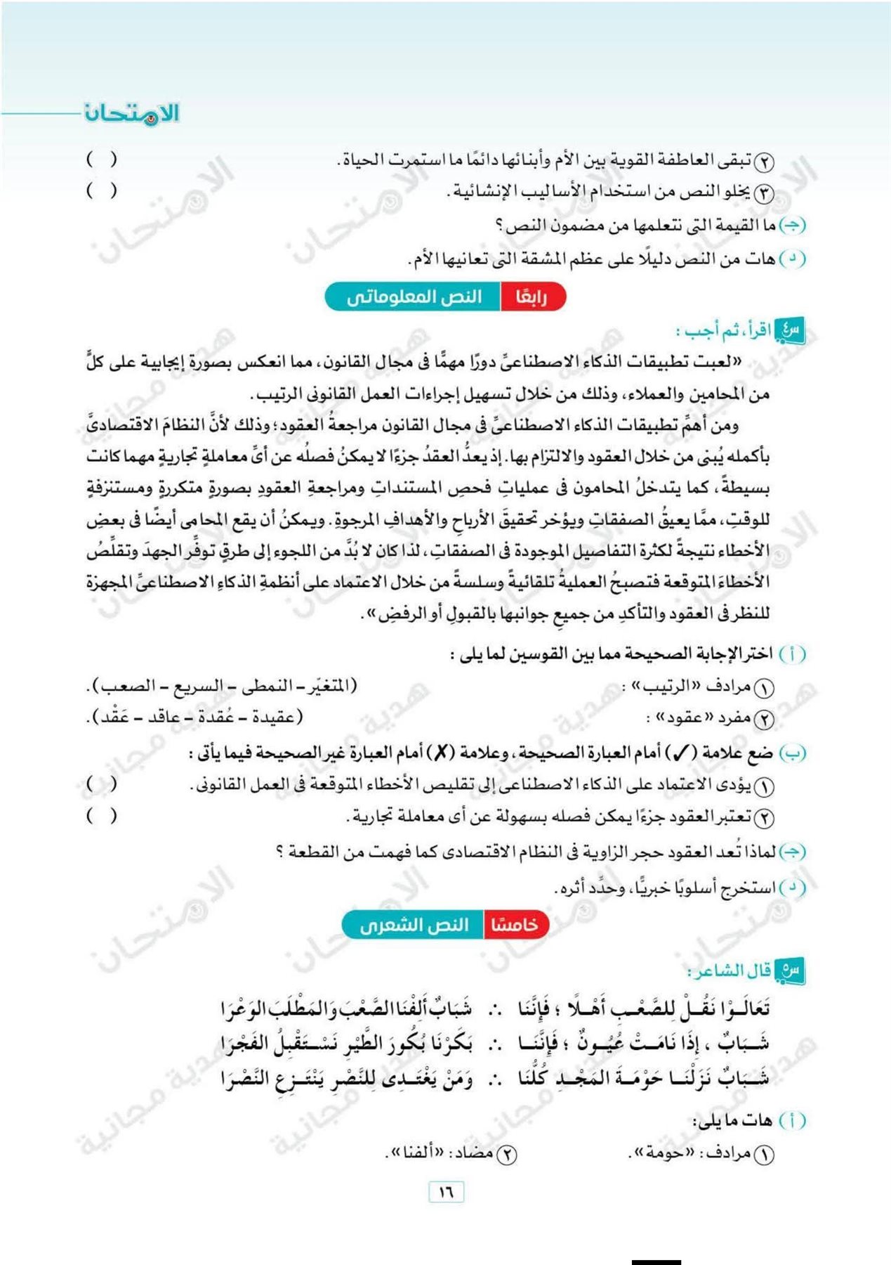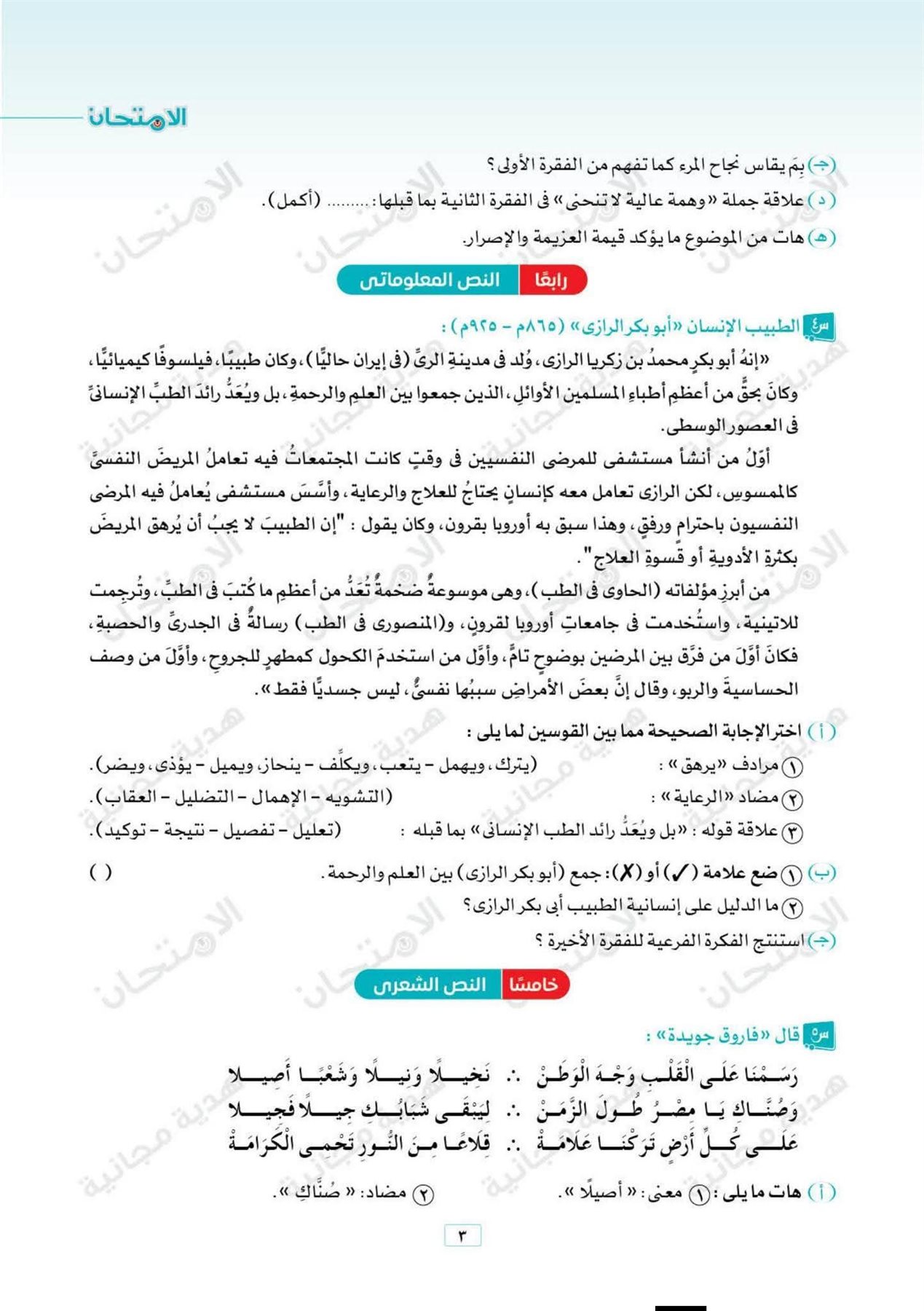 - امتحان اللغة العربية أولى إعدادي 2026 بالإجابات