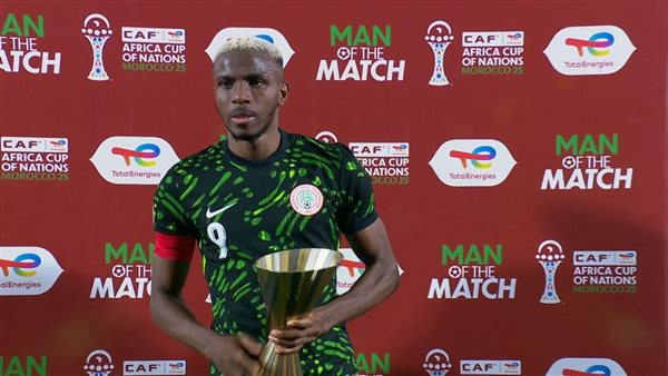 تُوج النجم النيجيري فيكتور أوسيمين بجائزة رجل مباراة منتخب بلاده أمام الجزائر، في اللقاء الذي أقيم على ملعب مراكش، اليوم الخميس، ضمن منافسات الدور ربع النهائي من بطولة كأس أمم أفريقيا 2025 المقامة في المغرب، والتي تستمر حتى 18 يناير الجاري.