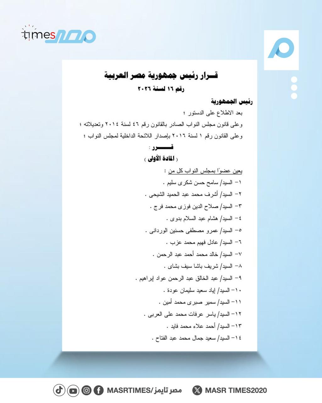 أعلن الرئيس عبد الفتاح السيسي منذ قليل أسماء الـ 28 عضو المعينين في مجلس النواب.