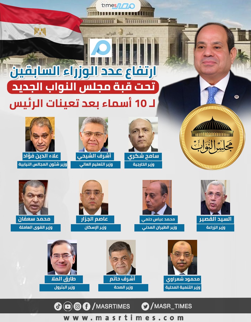 شهد مجلس النواب، عقب قرارات التعيين الصادرة اليوم، تزايدًا ملحوظًا في عدد الوزراء السابقين والحاليين تحت قبة البرلمان، ليصل عددهم إلى 10 وزراء انتقلوا من مقاعد الحكومة إلى مقاعد السلطة التشريعية، في خطوة تعكس استمرار الحضور التنفيذي داخل المؤسسة البرلمانية.