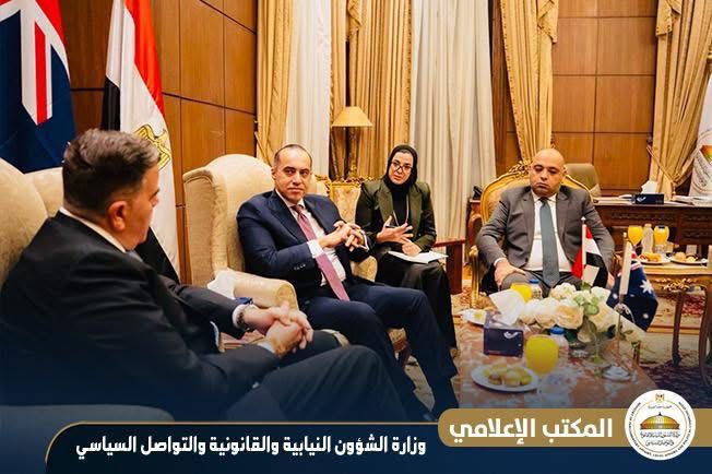 استقبل المستشار محمود فوزي، وزير الشؤون النيابية والقانونية والتواصل السياسي ميلتون ديك، رئيس مجلس النواب الفيدرالي الأسترالي، صباح اليوم الأحد 11 يناير 2026 بمقر وزارة الشؤون النيابية والقانونية والتواصل السياسي، بالقصر العيني.