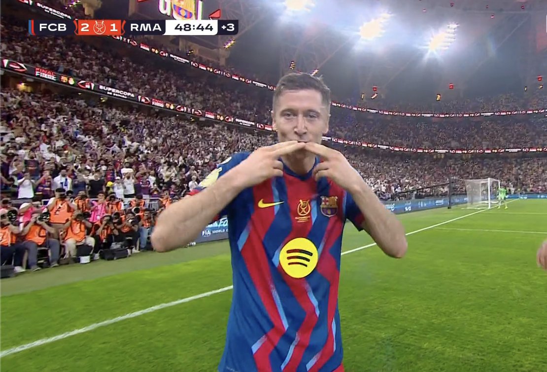 دقيقة 45+4: روبرت ليفاندوفسكي يعيد التقدم لبرشلونة سريعاً بعد تمريرة رائعة من بيدري.