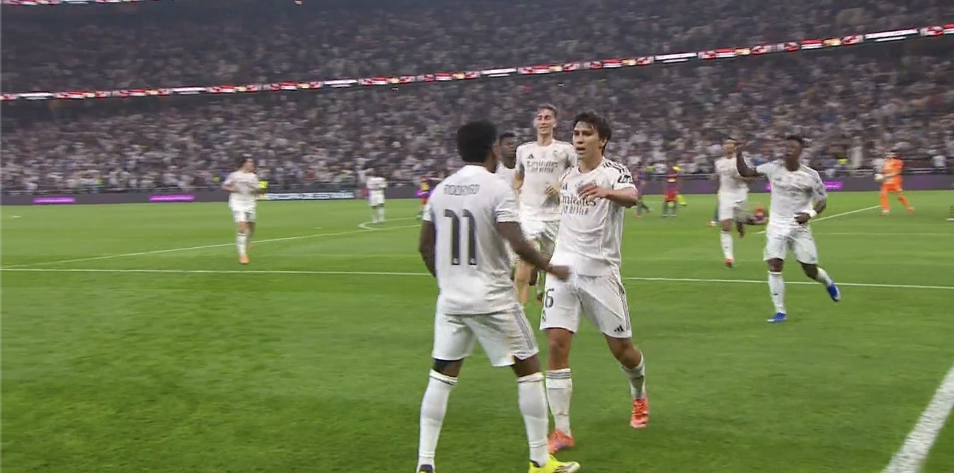 دقيقة 45+2: فينيسيوس جونيور يعادل النتيجة لريال مدريد بمجهود فردي رائع على طريقة مارادونا.