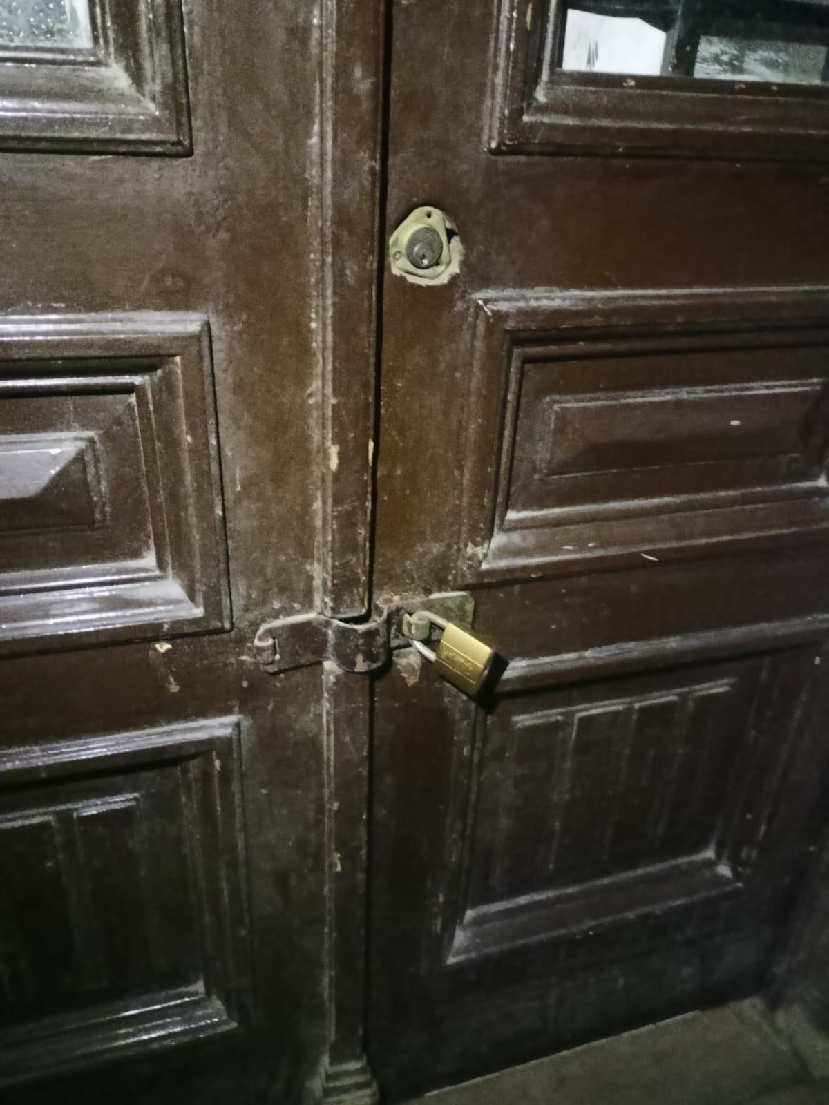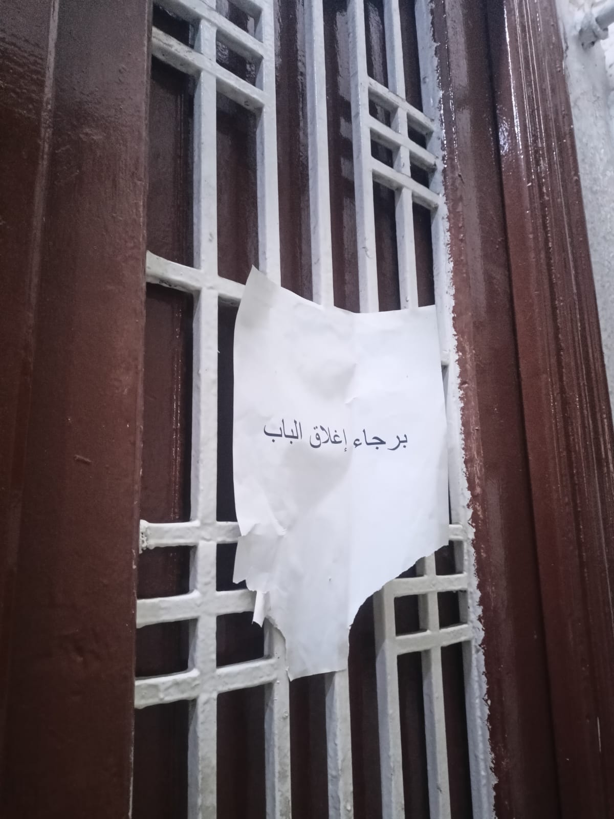 وبالصعود إلى الطوابق واحدة تلو الأخرى، لم يُعثر على أي مقر حزبي سوى شقة مغلقة، معلق على بابها لافتة تحمل عبارة: «برجاء قفل الباب».