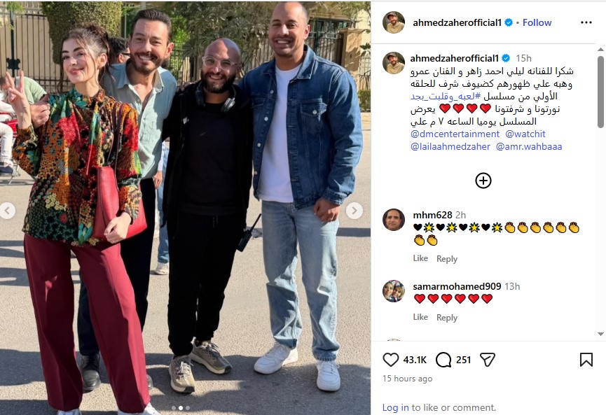 حرص الفنان أحمد زاهر على توجيه رسالة شكر لابنته الفنانة ليلى زاهر والفنان عمرو وهبة، وذلك بعد ظهورهما ضيوفًا للحلقة الأولى من مسلسل لعبة وقلبت بجد، الذي يُعرض حاليًا على شاشة دي إم سي.