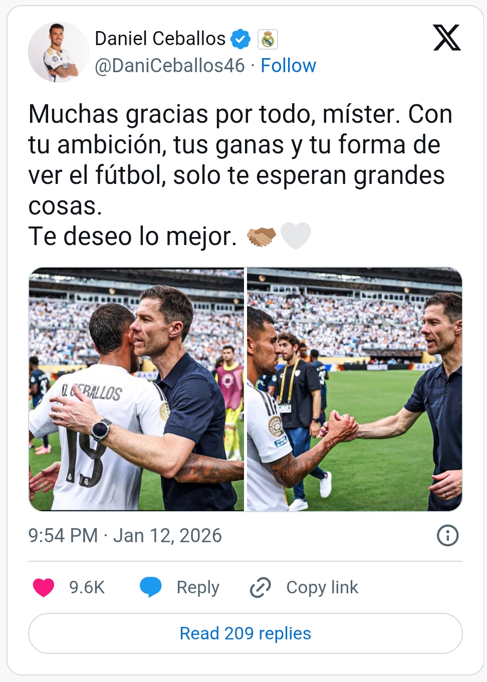 من جانبه، خاطب الموهبة التركية أردا جولر مدربه السابق قائلاً: "سيد تشابي ألونسو، شكراً لك على ثقتك بي ودعمك لي منذ البداية، كل حديث وكل تفصيل ساهم في صقل مهاراتي".