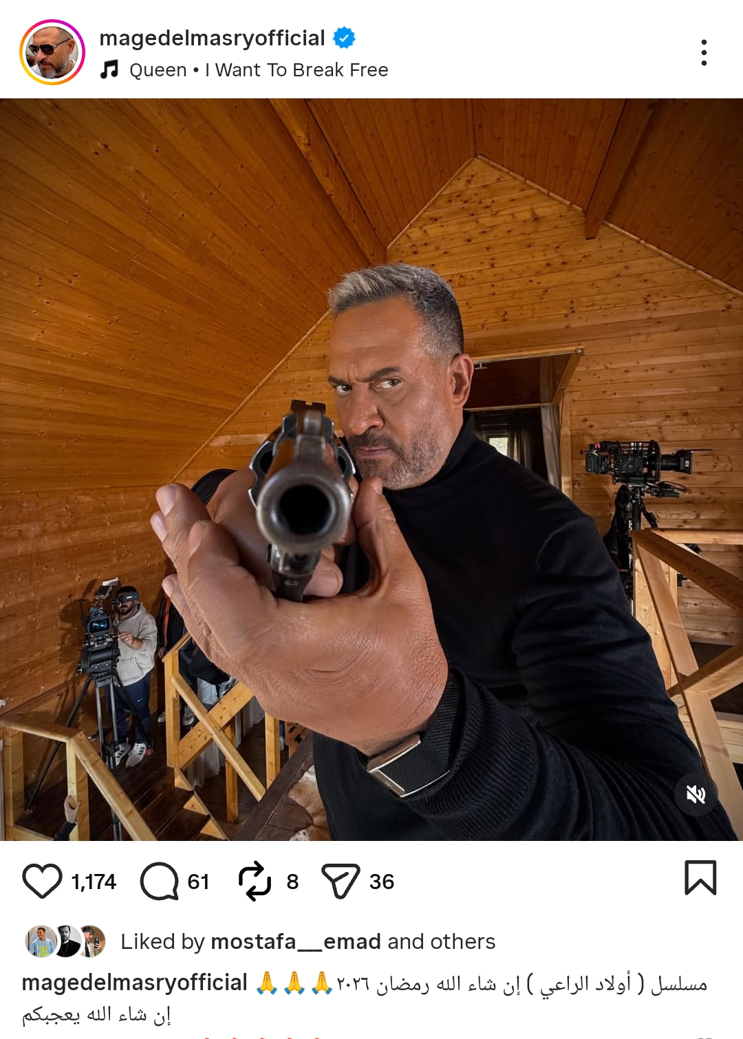 ونشر صورة جديدة من كواليس العمل، من خلال حسابه الرسمي عبر موقع تبادل الصور والفيديوهات القصيرة إنستجرام، وكتب: مسلسل أولاد الراعي إن شاء الله رمضان 2026 إن شاء الله يعجبكم.