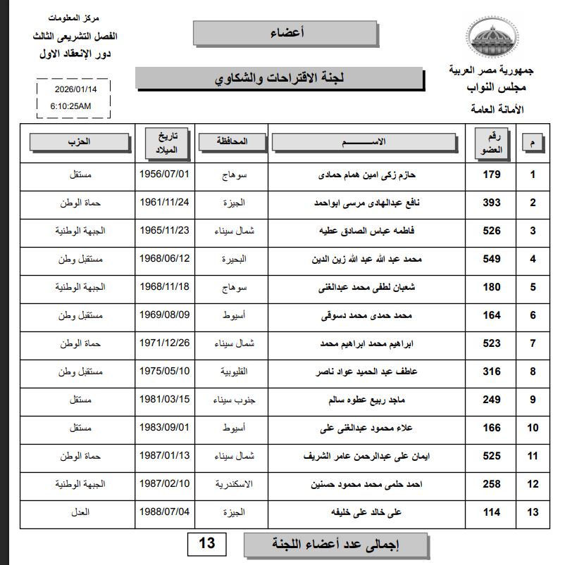 بالأسماء.. رغبات النواب في الانضمام لـ لجنة الاقتراحات والشكاوي بمجلس النواب