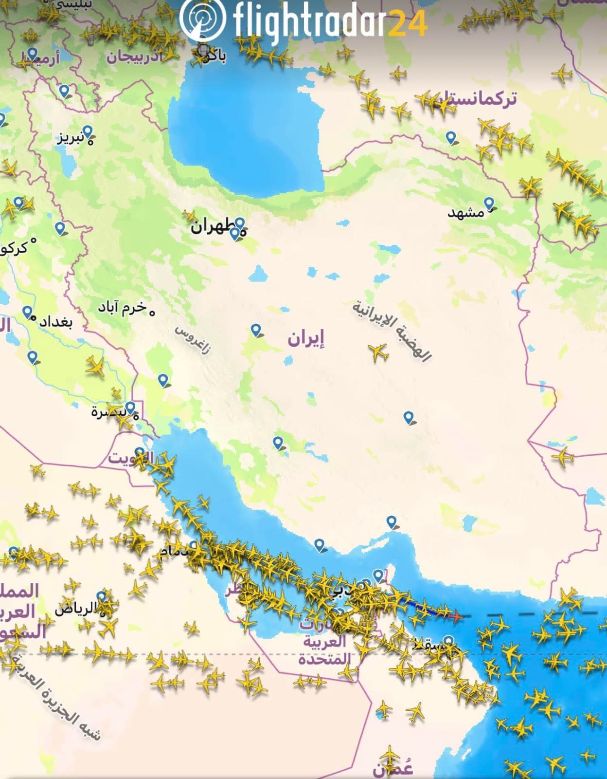 شاهد المجال الجوي الإيراني بعد إغلاقه أمام جميع الرحلات