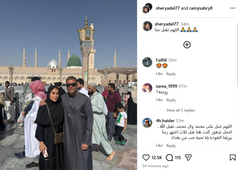 أدى الفنان رامي صبري مناسك العمرة بالمملكة العربية السعودية برفقة زوجته شيري عادل، وذلك بالتزامن مع ليلة الإسراء والمعراج التي تحل اليوم.