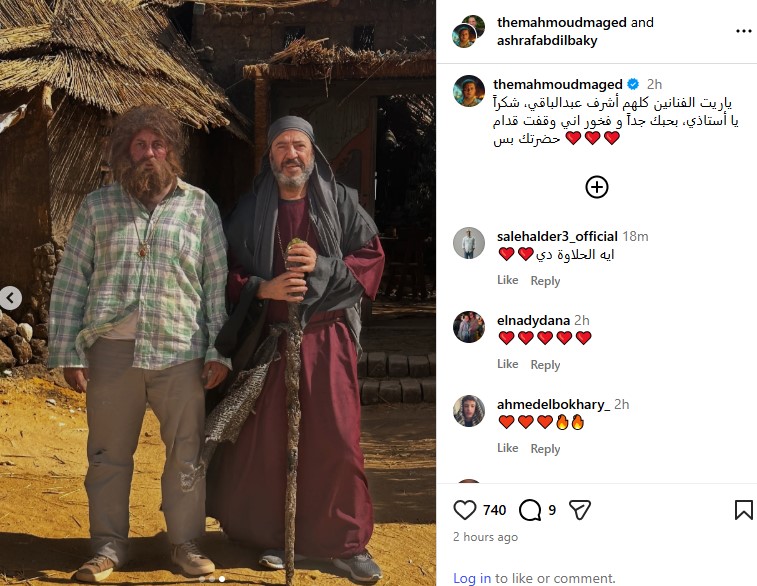 ونشر محمود ماجد صورا من الكواليس جمعته بالفنان أشرف عبد الباقي، من خلال حسابه الرسمي عبر موقع تبادل الصور والفيديوهات القصيرة إنستجرام، وعلق: ياريت الفنانين كلهم أشرف عبدالباقي، شكراً يا أستاذي، بحبك جداً و فخور اني وقفت قدام حضرتك بس.