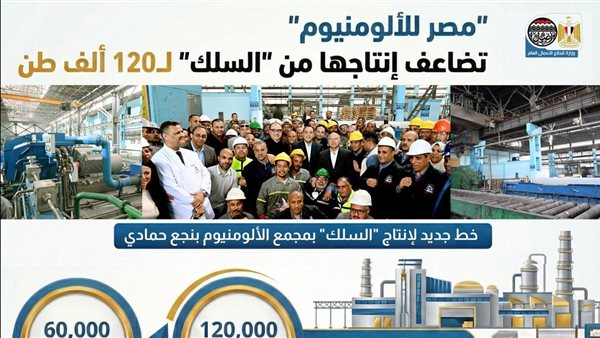 شركة "مصر للألومنيوم" تضاعف طاقتها الإنتاجية من سلك الألومنيوم لتصل إلى 120 ألف طن سنوياً| انفوجراف