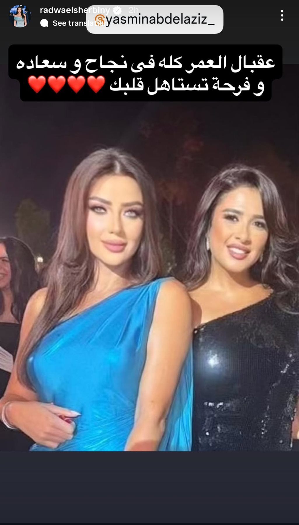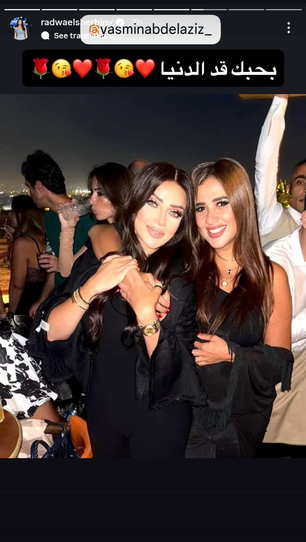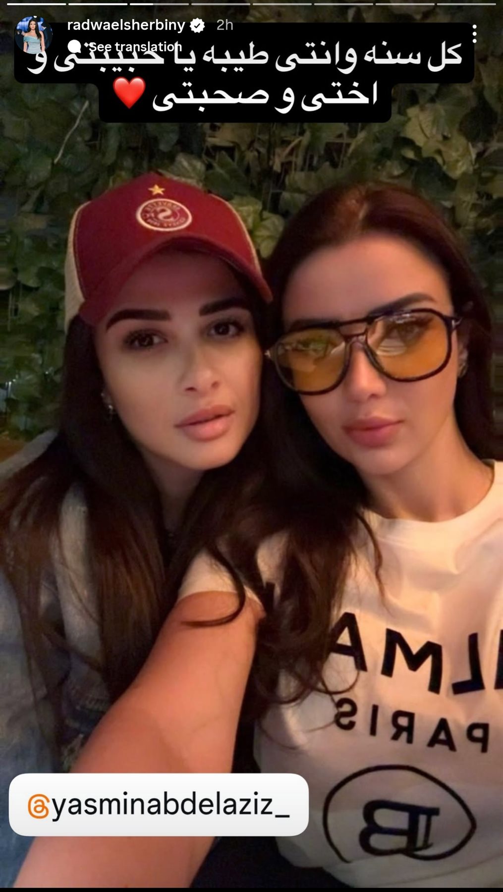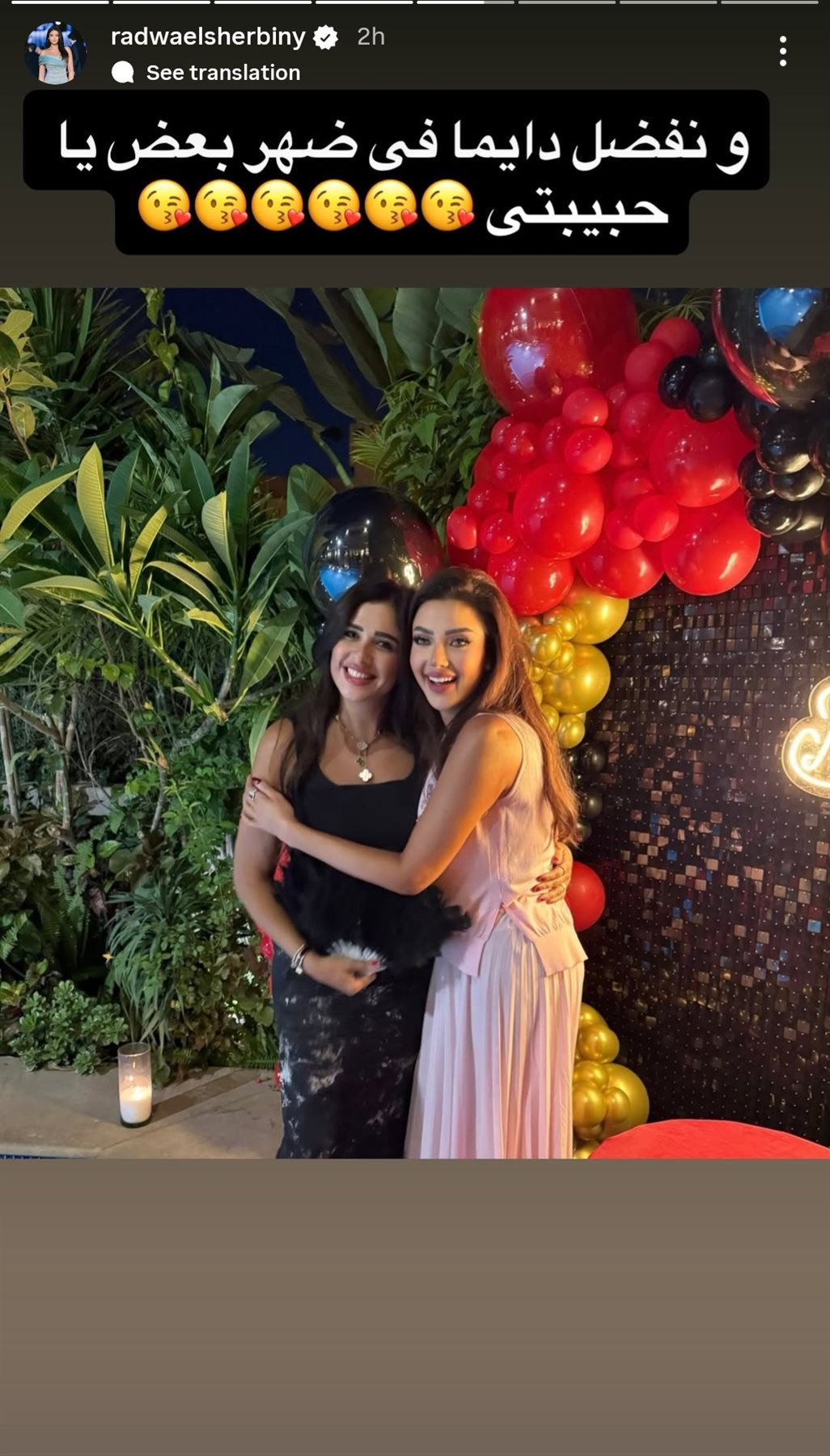 ونشرت رضوى الشربيني صور تجمعهما سويًا، من خلال حسابها الرسمي عبر موقع تبادل الصور والفيديوهات القصيرة إنستجرام، وكتبت: كل سنة وانتي طيبة يا حبيبتي وأختي وصحبتي.