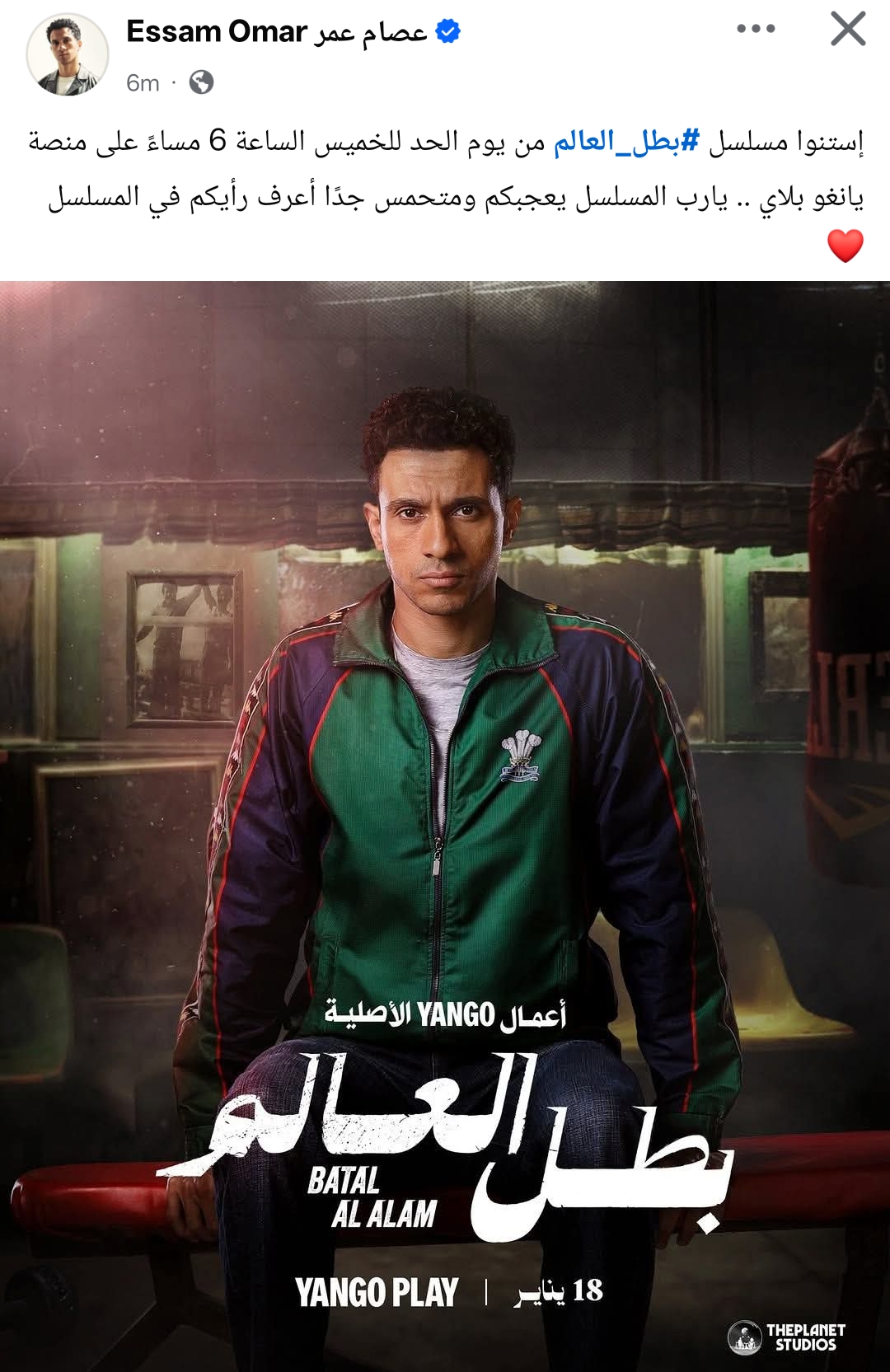 شوق الفنان عصام عمر جمهوره لـ مسلسل بطل العالم، الذي من المقرر طرحه خلال الأيام القليلة المقبلة حصريًا على يانجو بلاي.