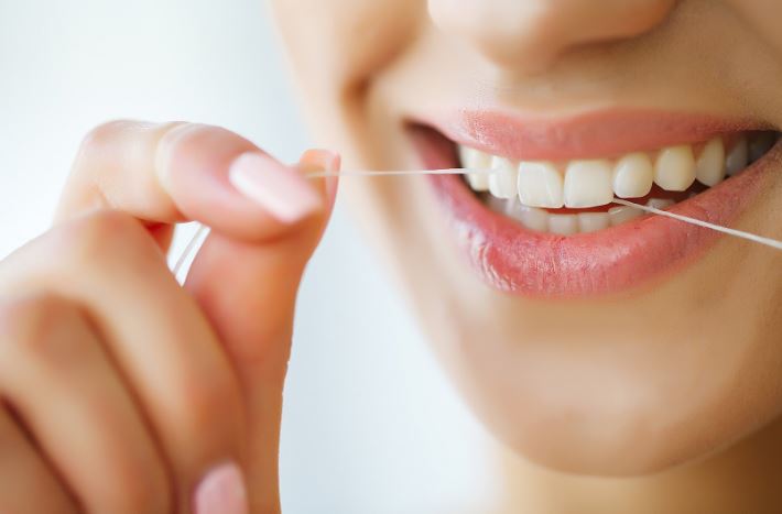 استخدام خيط الأسنان يوميًا لإزالة الفتات الغذائية والجراثيم من بين الأسنان