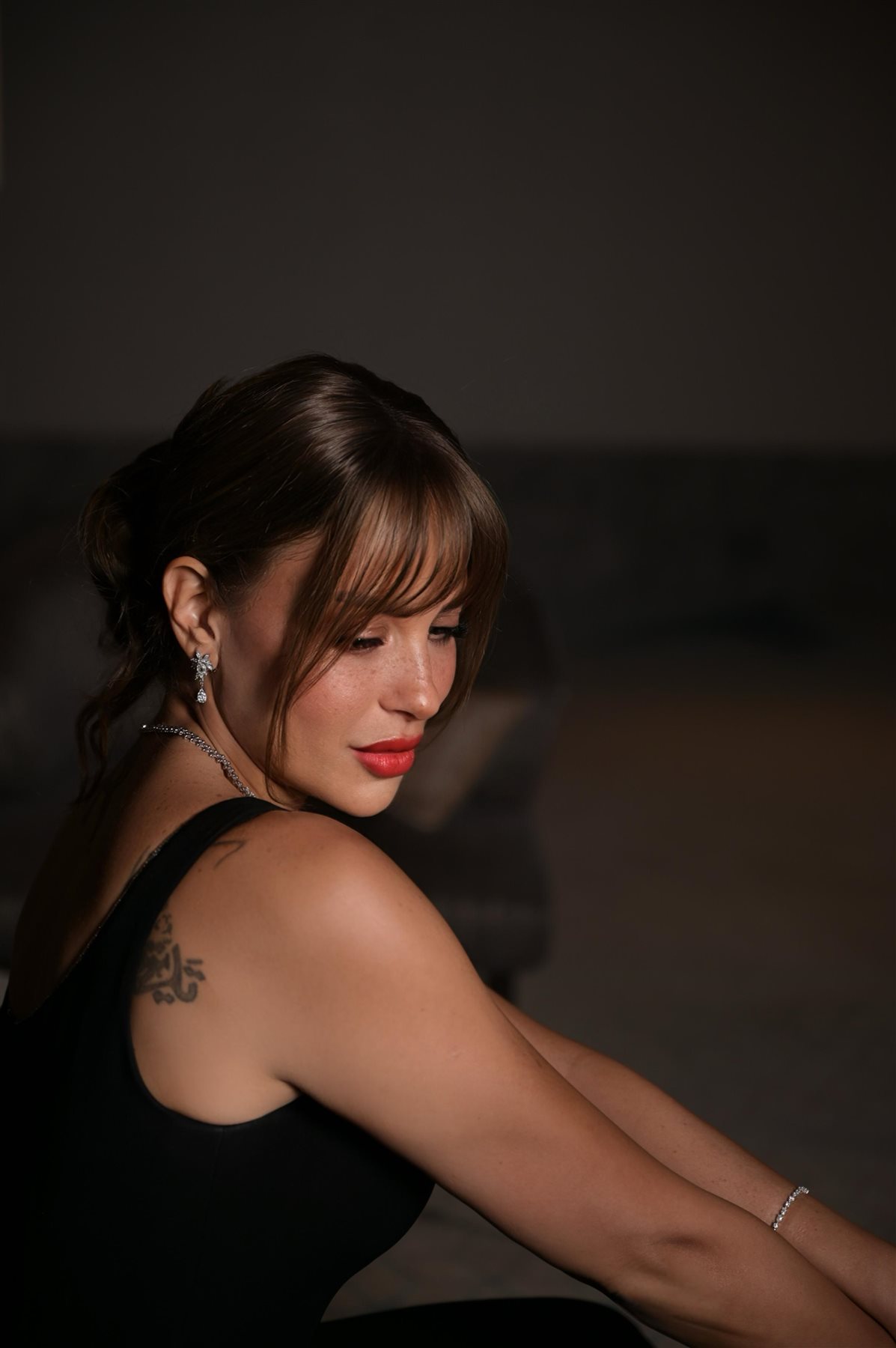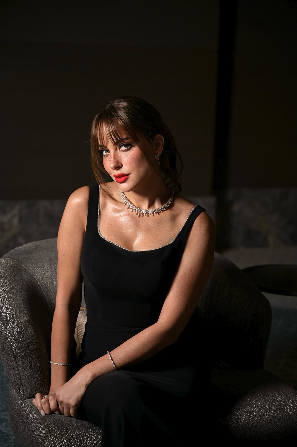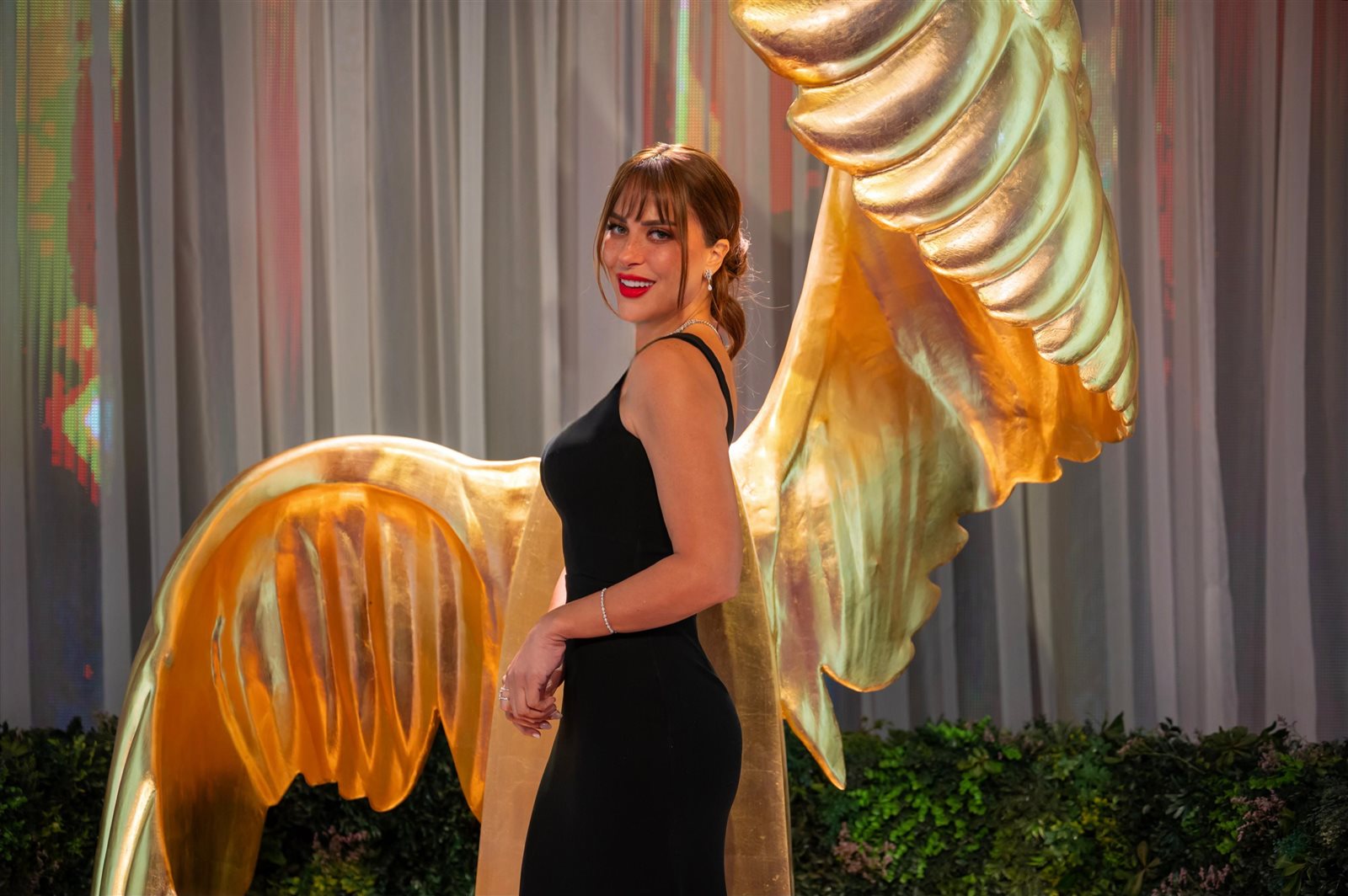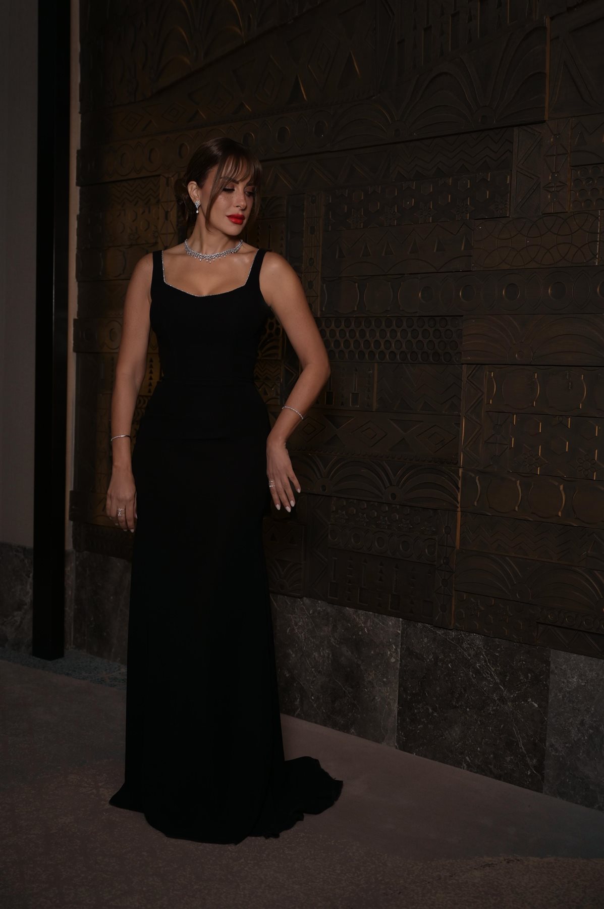 وظهرت ريم مصطفى خلال الحفل بفستان أسود أنيق جاء بتصميم ناعم وخالٍ من المبالغة، أبرز رشاقتها وأنوثتها بأسلوب راقٍ، مع قصّة بسيطة زادت من جاذبية الإطلالة ومنحتها لمسة فخامة غير متكلّفة، أما من ناحية المكياج وتسريحة الشعر، فاختارت ريم إطلالة طبيعية وناعمة، انسجمت تمامًا مع روح الفستان، حيث بدا المكياج هادئًا يبرز ملامحها الجذابة، فيما جاءت تسريحة الشعر بسيطة وأنيقة.