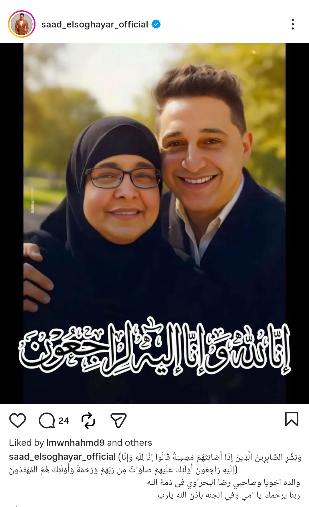 سعد الصغير ينعي والدة رضا البحراوي بكلمات حزينة
