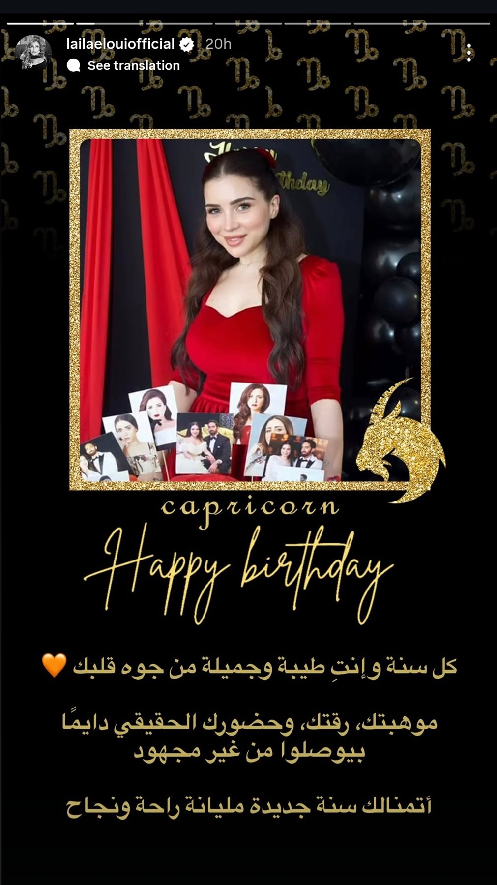 ونشرت ليلى علوي صورة لـ مي عز الدين من خلال حسابها الرسمي عبر موقع تبادل الصور والفيديوهات القصيرة إنستجرام، عبر خاصية ستوري، كتبت: كل سنة وانتي طيبة وجميلة من جوا قلبك.. موهبتك ورقتك وحضورك الحقيقي دايمًا بيوصلوا من غير مجهود.. أتمنالك سنة جديدة مليانة راحة ونجاح.