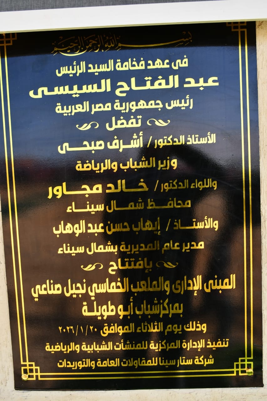 افتتح الدكتور أشرف صبحي، وزير الشباب والرياضة، يرافقه اللواء أركان حرب الدكتور خالد مجاور، محافظ شمال سيناء، أعمال تطوير المبني الإداري والملعب الخماسي بمركز شباب أبو طويلة، بحضور القيادات التنفيذية والشعبية، وذلك ضمن الجولة التفقدية التي يقوم بها الوزير لمتابعة سير العمل بالمنشآت الشبابية والرياضية بالمحافظة.
