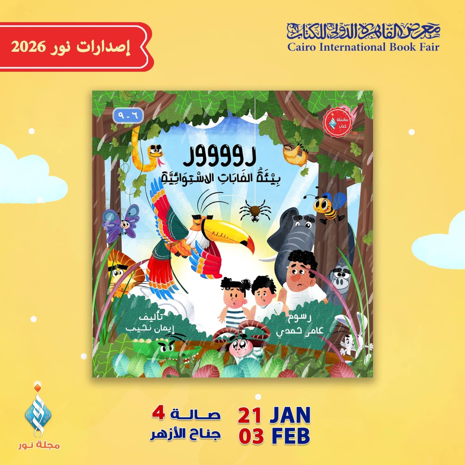 يقدِّم جناح الأزهر الشريف بمعرض القاهرة الدولي للكتاب، في دورته الـ 57، لزوَّاره من الأطفال والبراعم، كتاب "روووور.. بيئة الغابات الاستوائية"، من إصدارات سلسلة كتاب مجلة نور للأطفال، الصادرة عن المنظمة العالمية لخريجي الأزهر.