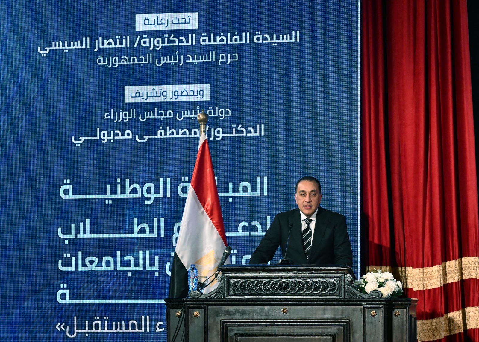 ألقى الدكتور مصطفي مدبولي، رئيس مجلس الوزراء، كلمة خلال فعاليات احتفالية إطلاق المبادرة الوطنية لدعم الطلاب المتفوقين بالجامعات المصرية "منحة علماء المستقبل"، المقامة برعاية من الدكتورة انتصار السيسي، قرينة الرئيس عبد الفتاح السيسي، رئيس الجمهورية، وذلك بحضور الدكتور خالد عبد الغفار، نائب رئيس مجلس الوزراء للتنمية البشرية، وزير الصحة والسكان، وحسن عبد الله، محافظ البنك المركزي المصري، والدكتور محمد أيمن عاشور، وزير التعليم العالي والبحث العلمي، وعدد من الوزراء ووزراء التعليم العالي السابقين، والدكتور محمد سامي عبدالصادق، رئيس جامعة القاهرة، بالإضافة إلى عدد من كبار المسئولين، والقيادات البنكية ، ورجال وسيدات الأعمال والمجتمع الأهلي وأبنائنا وبناتنا من الطلاب.