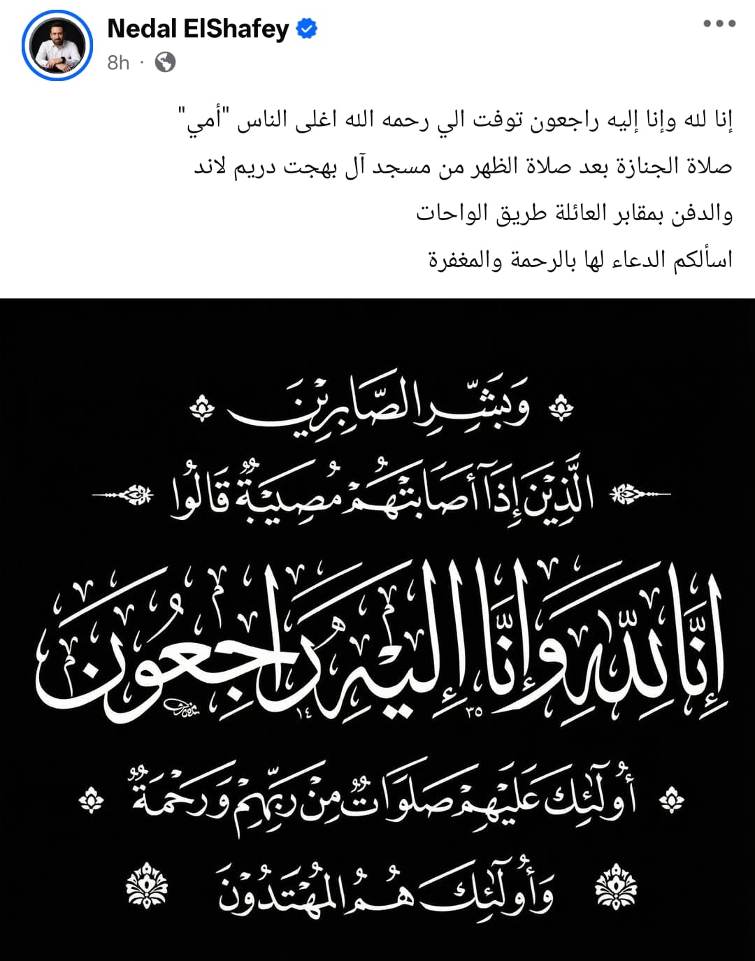 موعد صلاة جنازة والدة الفنان نضال الشافعي