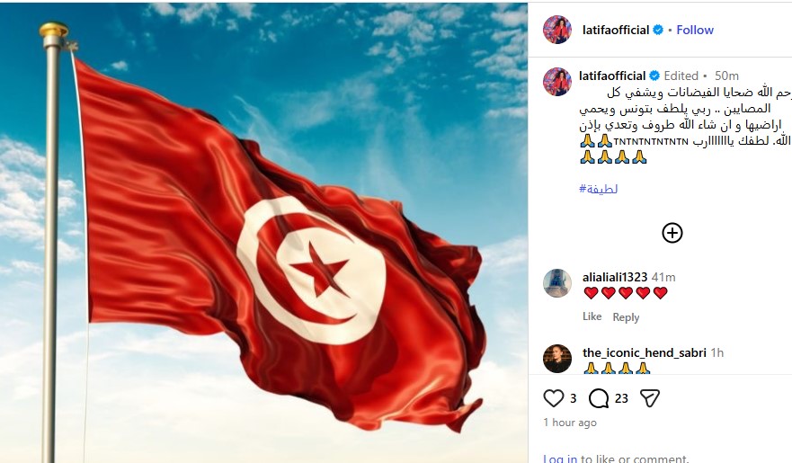 لطيفة تدعم بلدها تونس بعد انهيار المنازل بسبب السيول