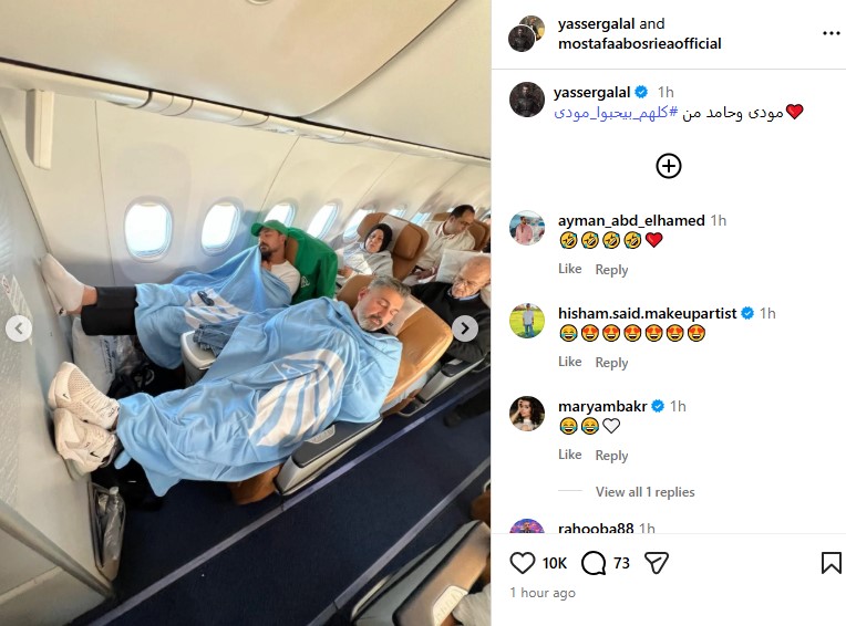 من الطائرة.. ياسر جلال ينشر كواليس «كلهم بيحبوا مودي» برفقة مصطفى أبوسريع