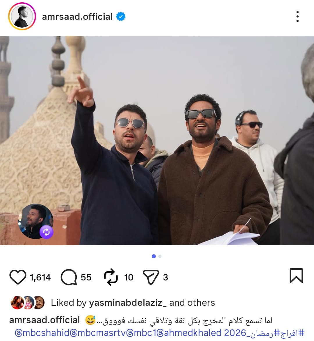 أشاد الفنان عمرو سعد بـ المخرج أحمد خالد مخرج مسلسله الجديد «إفراج»، الذي ينافس به في السباق الرمضاني المقبل 2026.