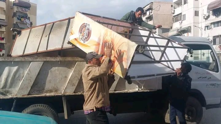 كما تم رفع وإزالة فروشات خضار وفاكهة، وأقفاص خشبية، وعربات يد، وشماسي، وتند، وبنوك وكراسي، وأكشاك، وستاندات وحوامل معدنية وألواح وفروشات بيع متنوعة، باستخدام معدات وسيارات الحي.