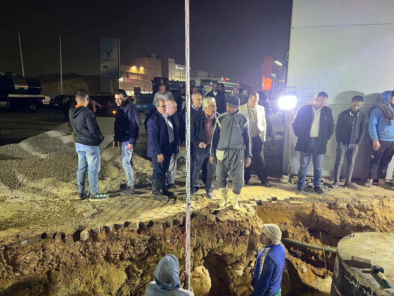 رئيس القابضة للمياه يتابع أعمال إصلاح الهبوط الأرضي بميدان محمد زكي بمحور الشهيد