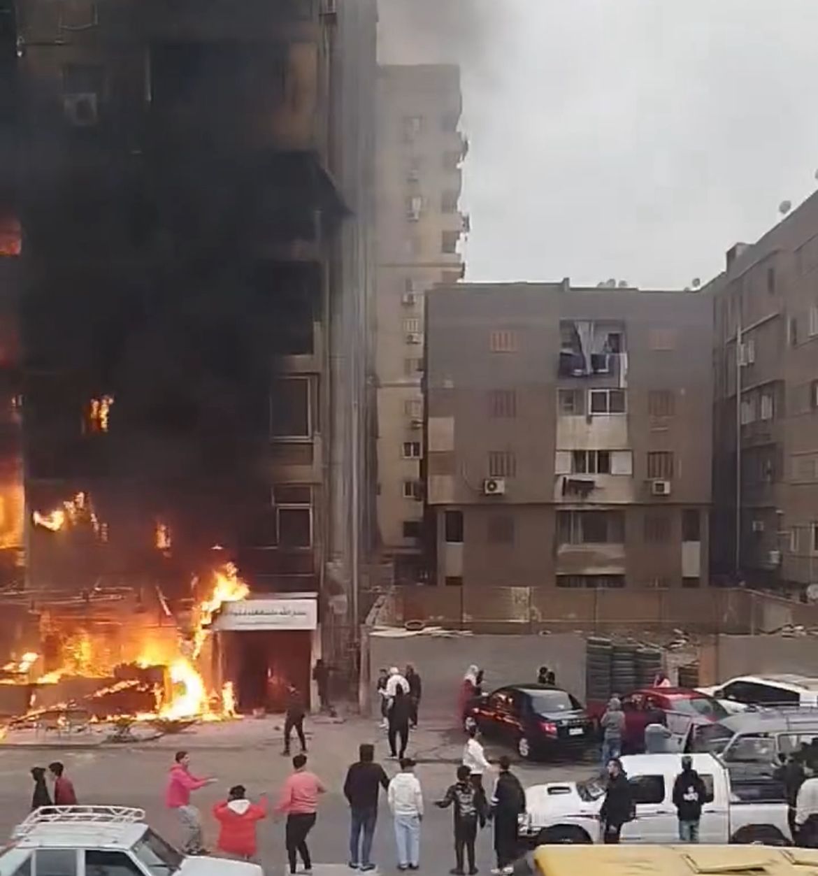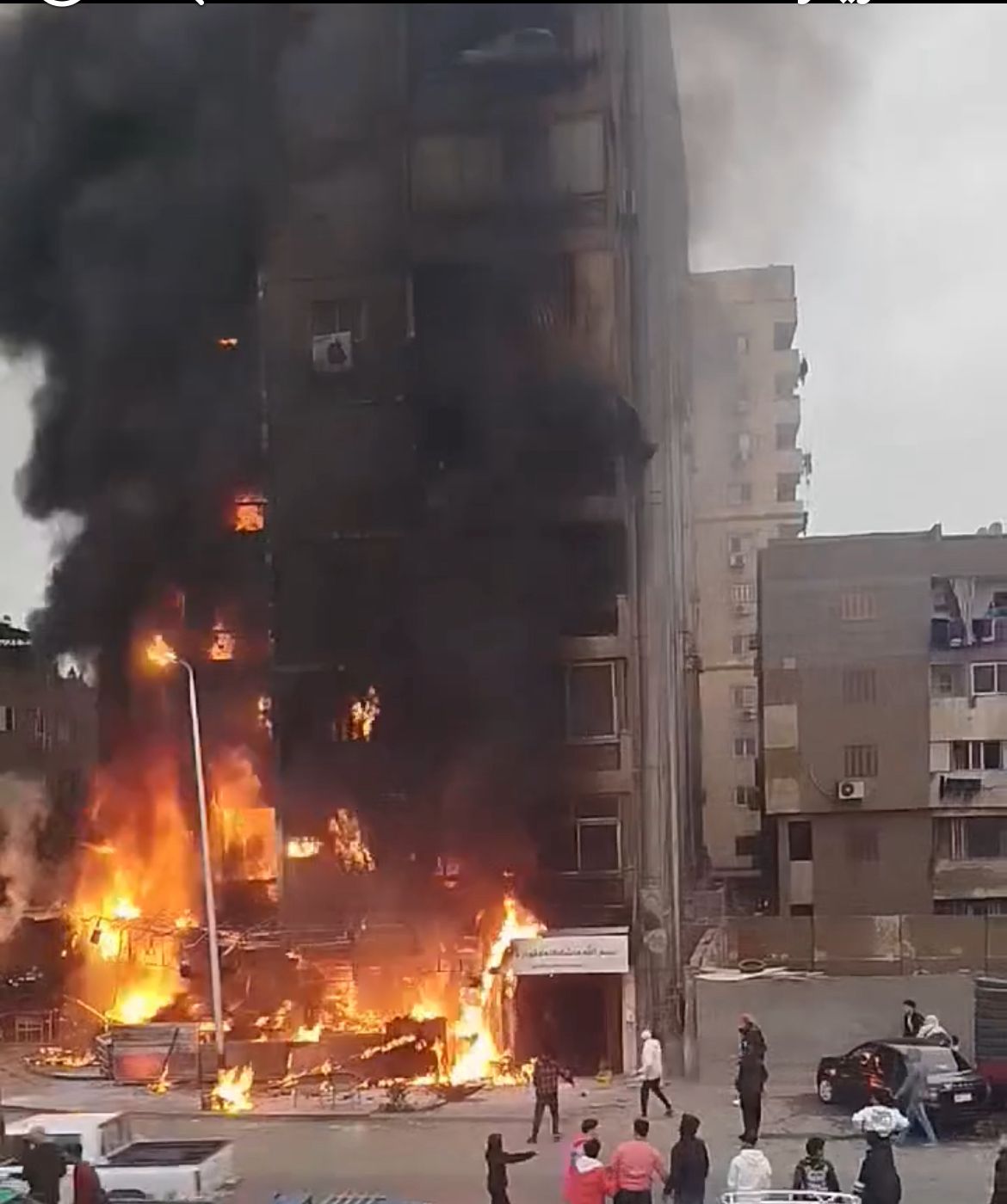 أفادت التحريات الأولية وشهود العيان أن النيران اندلعت في الطابق الأرضي نتيجة انفجار أسطوانة غاز داخل أحد المحال التجارية «مطعم»، مما أدى إلى انتشار النيران بسرعة لتلتهم واجهة العقار وتصل إلى الطوابق العليا.