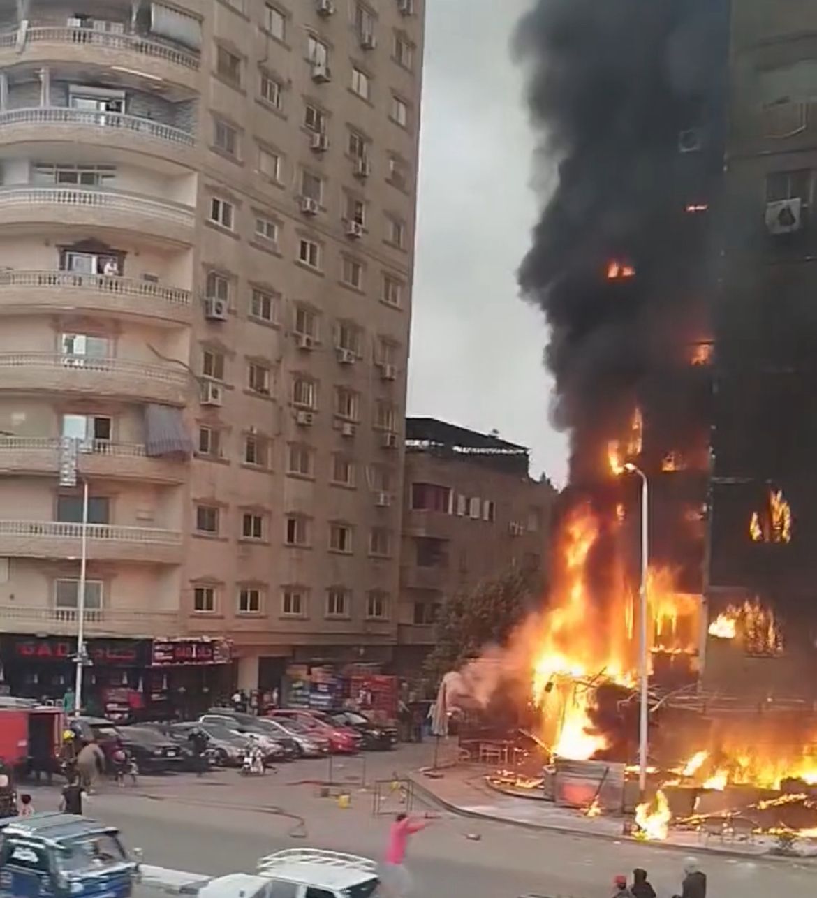 تفاصيل اندلاع حريق هائل بعقار سكني أمام نادي مصر للبترول بحدائق القبة