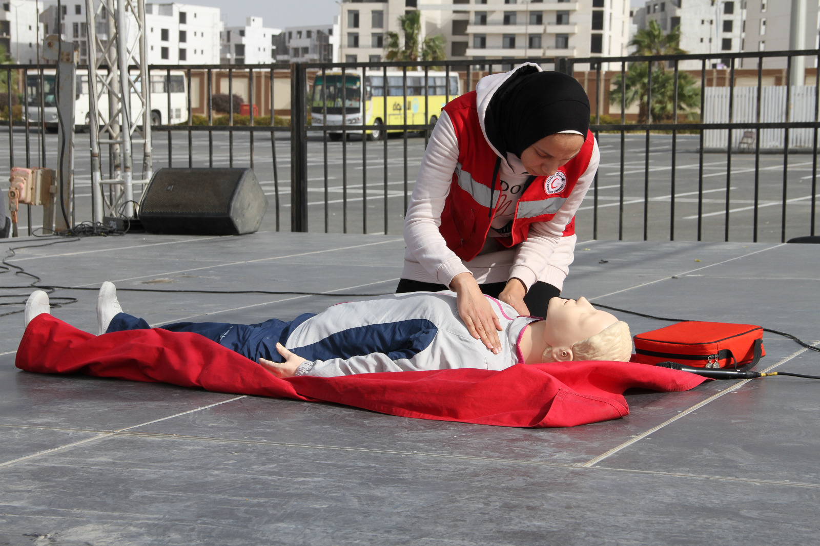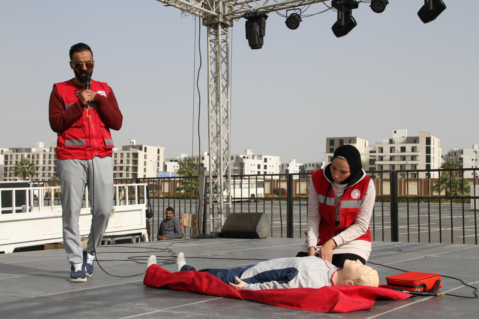 شهد المسرح الكبير، في إطار الفعاليات الثقافية والفنية المصاحبة لمعرض الكتاب، تنظيم باقة متنوعة من الأنشطة الفنية والتوعوية، حيث قدم الهلال الأحمر المصري نشاطا توعويا مميزا حول الإسعافات الأولية، استهدف رفع وعي الجمهور بطرق التعامل مع الحالات الطارئة والإصابات البسيطة.
