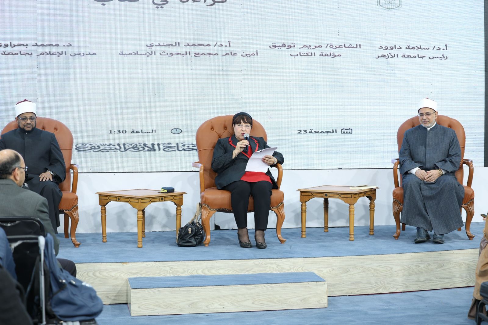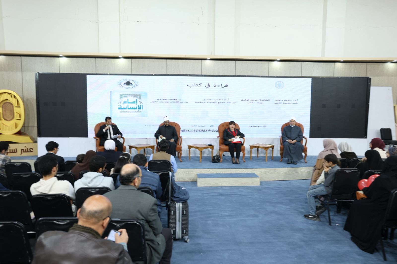 نظم جناح الأزهر الشريف بمعرض القاهرة الدولي للكتاب، في دورته الـ (٥٧)، اليوم الجمعة، ندوة فكرية بعنوان قراءة في كتاب «إمام الإنسانية»، لمناقشة كتاب الكاتبة والشاعرة المسيحية مريم توفيق.