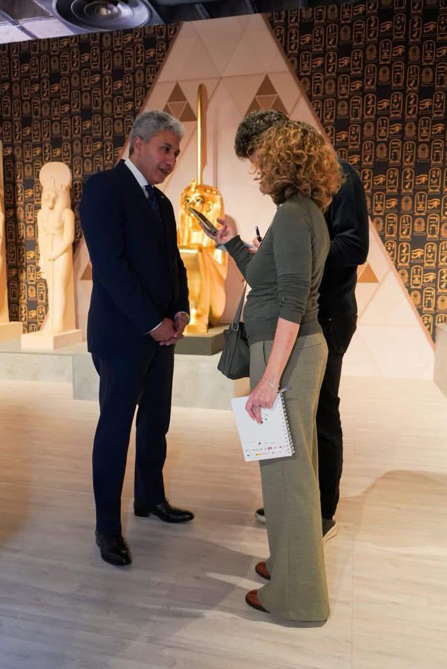 وتطرق السيد شريف فتحي للحديث عن المتحف المصري الكبير ومشاركة جلالة ملك إسبانيا في حفل افتتاحه الرسمي الذي أُقيم في الأول من نوفمبر الماضي، وما يشهده المتحف منذ افتتاحه من إقبال غير مسبوق من الزائرين المصريين والسائحين؛ حيث بلغ متوسط أعداد زائريه حالياً 15 ألف زائر كحد أقصى يومياً.