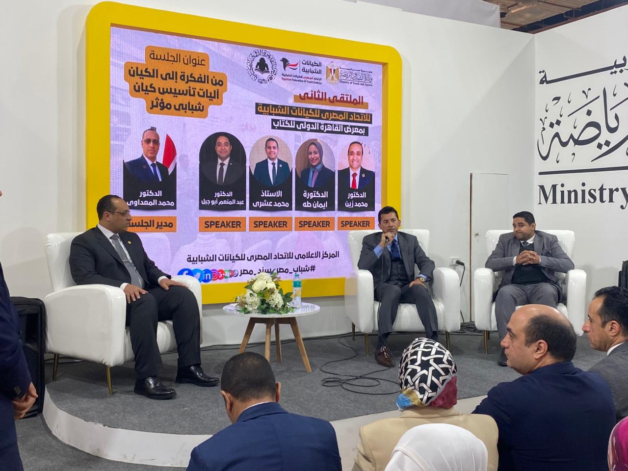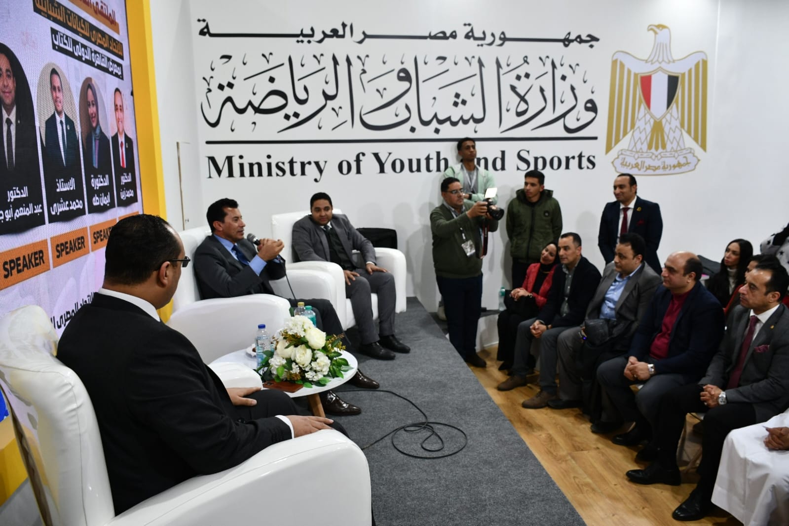 شهد الدكتور أشرف صبحي، وزير الشباب والرياضة، الجلسة الحوارية التي نظمها الاتحاد المصري للكيانات الشبابية, بعنوان «من الفكرة إلى الكيان»، وذلك بجناح وزارة الشباب والرياضة ضمن فعاليات الدورة السابعة والخمسين لمعرض القاهرة الدولي للكتاب.