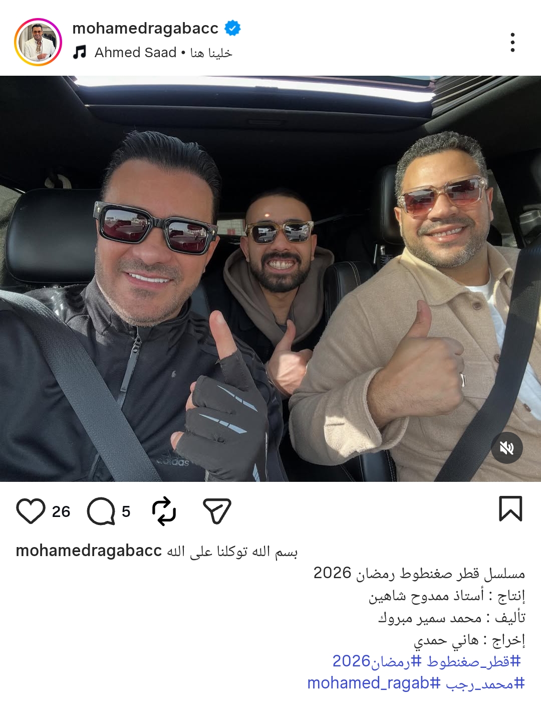 ونشر محمد رجب صورة من خلال حسابه الرسمي عبر موقع تبادل الصور والفيديوهات القصيرة «إنستجرام»، وعلق: «بسم الله توكلنا على الله.. مسلسل قطر صغنطوط رمضان 2026، إنتاج استاذ محمود شاهين، تأليف محمد سمير مبروك، إخراج هاني حمدي».