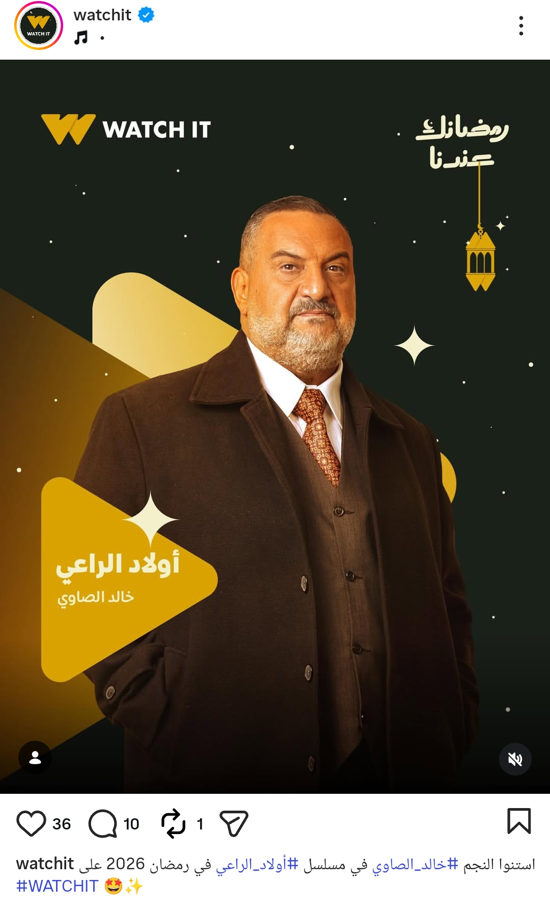 ونشرت Watch it البوستر من خلال حسابها الرسمي عبر موقع تبادل الصور والفيديوهات القصيرة إنستجرام، وعلقت: استنوا النجم خالد الصاوي في مسلسل أولاد الراعي في رمضان 2026 على Watch it.