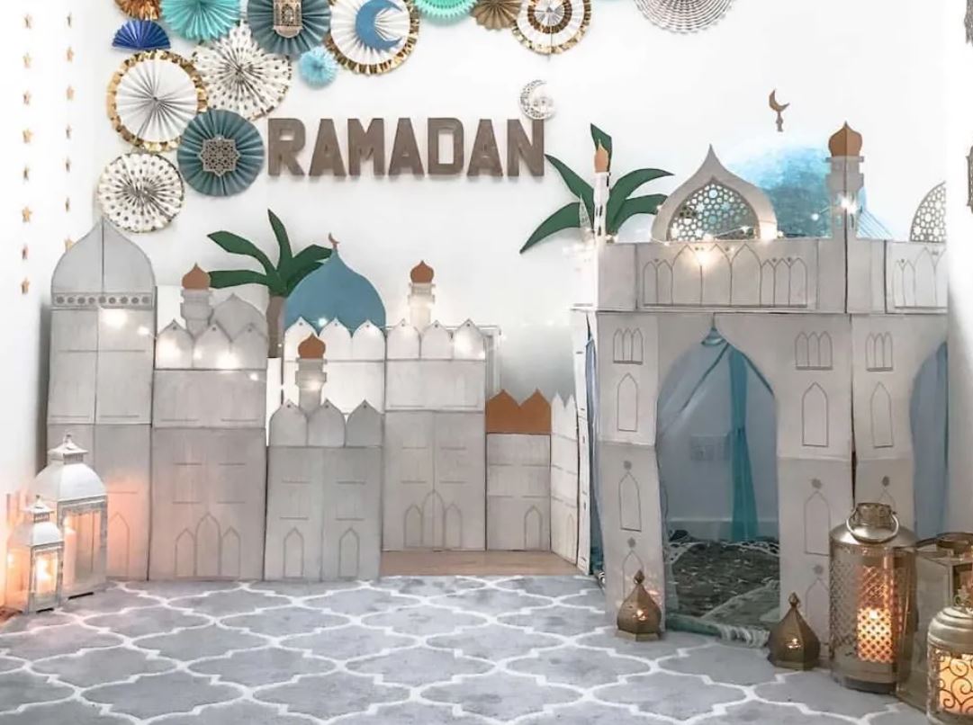 عليكِ البدء بتزيينه وعمل ديكورات رمضانية بسيطة عليه فليكن كلمة رمضان كريم، ووضع بعض وحدات الإنارة حوله .