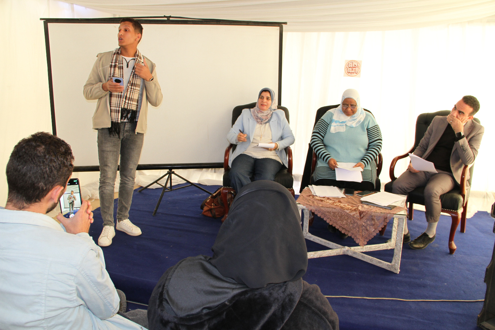 استضاف «مخيم أهلنا وناسنا» بمعرض القاهرة الدولي للكتاب، في دورته السابعة والخمسين، الندوة الثالثة من ملتقى شعراء الجامعات، والتي خُصصت للاحتفاء بشعراء جامعة أسيوط، وأدارتها الشاعرة عليا طلحة، وكان مقرر عقدها في قاعة ملتقى الإبداع.