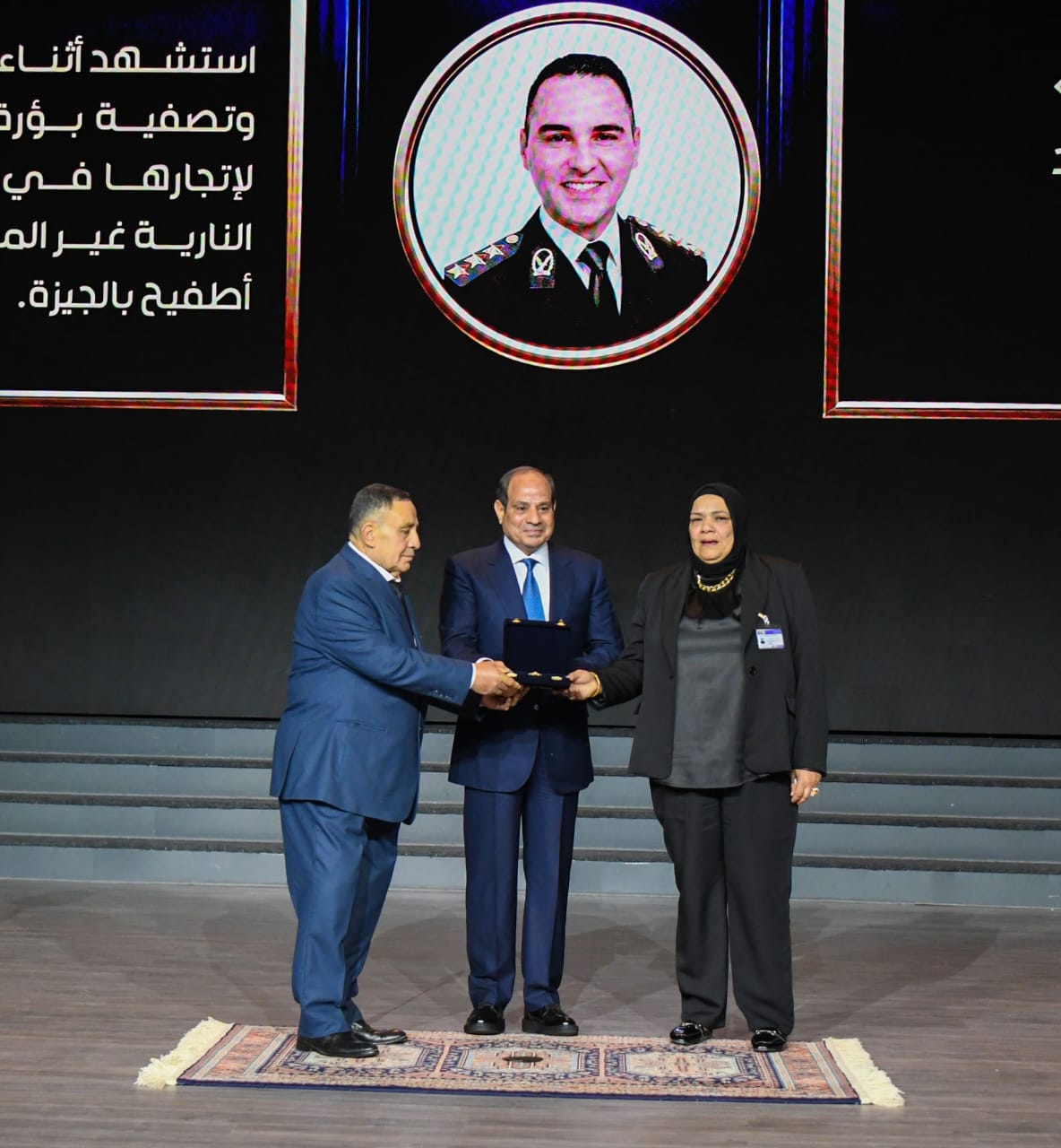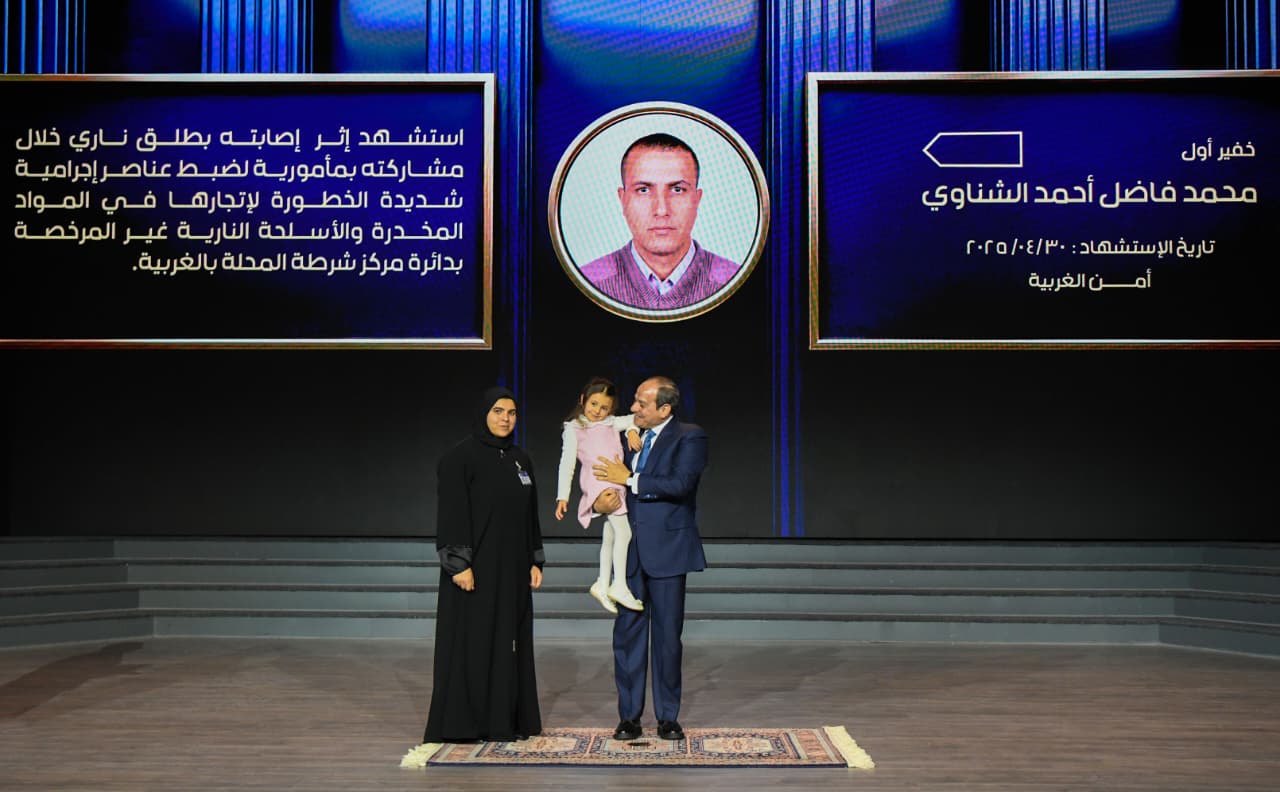 وأشار المتحدث الرسمي إلى أن السيد اللواء محمود توفيق وزير الداخلية ألقى كلمة بهذه المناسبة، اختتمها بتقديم هدية تذكارية للسيد الرئيس، عبارة عن مجسم يجسد معالم تاريخية وحديثة لجمهورية مصر العربية، يتصدره نسر الشرطة ورقم (٧٤) احتفالًا بعيد الشرطة لعام ٢٠٢٦، رمزًا للجمهورية الجديدة. وعقب ذلك، قام السيد الرئيس بمنح أربعة أوسمة لأسر شهداء الشرطة، كما منح سيادته اثني عشر ضابطًا أنواطًا تقديرًا لجهودهم المخلصة في خدمة الوطن.