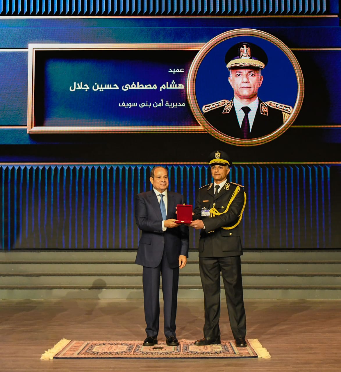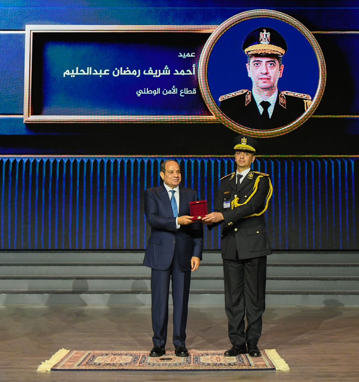 وذكر السفير محمد الشناوي، المتحدث الرسمي باسم رئاسة الجمهورية، أنّ برنامج الاحتفال تضمن عرض أوبريت “قصة وطن”، أعقبه تجسيد ملحمة الشهيد العقيد رامي هلال في فقرة خاصة، اختتمت بمصافحة السيد الرئيس لأسرة الشهيد ونجلِه، ثم فقرة غنائية عن شهداء الشرطة، وفيلم تسجيلي عن اصطفاف قوات ومعدات هيئة الشرطة، تلاه فيلم آخر يوثق تدريبات قوات الشرطة.