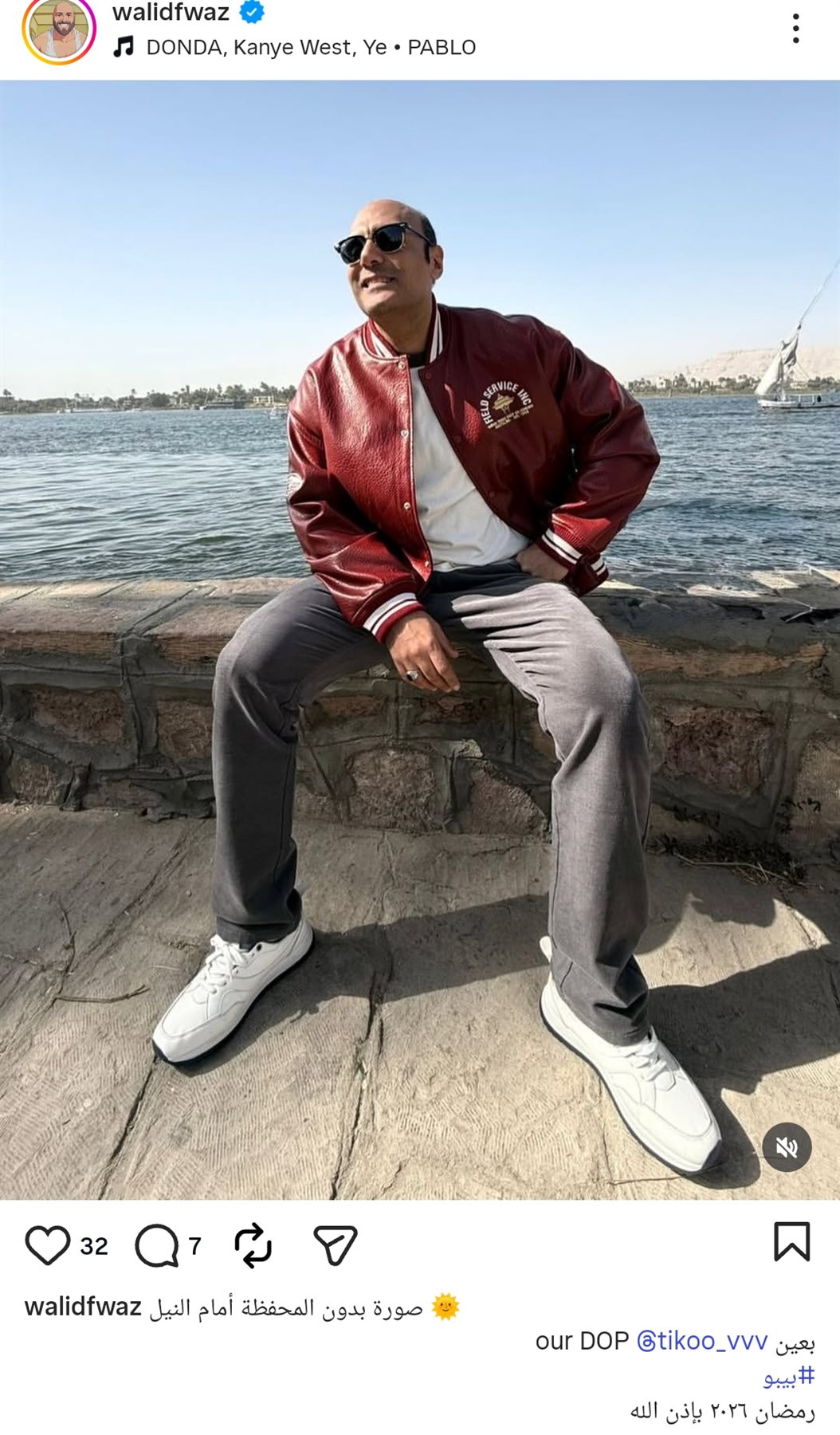 ونشر وليد فواز الكواليس من الأقصر، وذلك من خلال حسابه الرسمي عبر موقع تبادل الصور والفيديوهات القصيرة «إنستجرام»، وعلق: «صورة بدون المحفظة امام النيل.. بيبو رمضان 2026 بإذن الله».