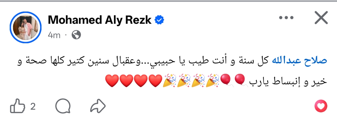 وكتب محمد علي رزق من خلال حسابه الرسمي عبر موقع التواصل الاجتماعي فيسبوك، قال: كل سنة وأنت طيب يا حبيبي.. وعقبال سنين كتير كلها صحة وخير وإنبساط يارب.