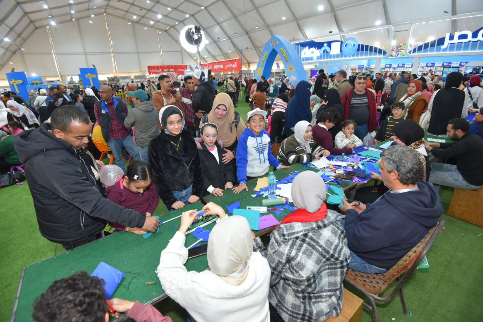 والتف الأطفال حول ورش: تلوين الخزف، والرسم على الوجه، وتصميم برواز من الورق، إلى جانب ورش «الأورجامي» والمجسمات، وورش المكرمية بعنوان «اصنع معلقة»، علاوة على ورش رسم وتلوين و«اصنع حديقة حيوان كبيرة من الصلصال».