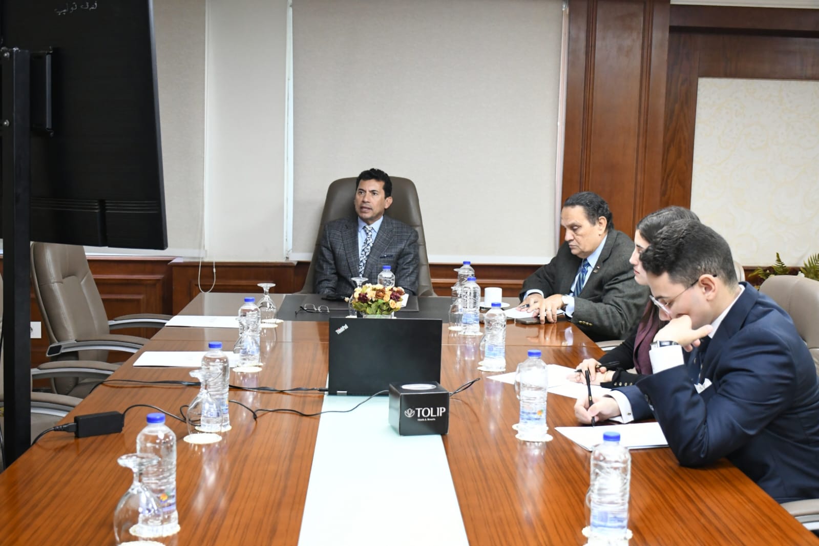 عقد الدكتور أشرف صبحي وزير الشباب والرياضة، مع مصطفى براف رئيس اتحاد اللجان الأولمبية الأفريقية «الأنوكا» عبر تقنية الفيديو كونفرانس، وبحضور اللواء أحمد ناصر رئيس اتحادية الكونفدراليات الرياضية الأفريقية «الأوكسا»؛ لمتابعة آخر الاستعدادات الخاصة باستضافة مصر لدورة الألعاب الأفريقية 2027.