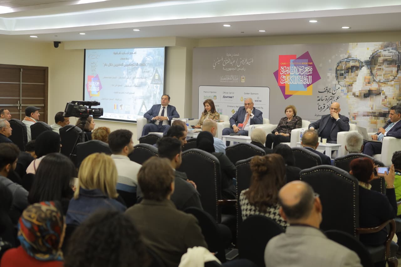 شهد محور «تجارب ثقافية» ضمن فعاليات معرض القاهرة الدولي للكتاب، انعقاد ندوة بعنوان «كتابات الدبلوماسيين المصريين خلال عام 2025»، بمشاركة نخبة من السفراء والدبلوماسيين المصريين الذين قدّموا خلال العام إصدارات فكرية وأدبية وسياسية تعكس خبراتهم الممتدة في العمل الدبلوماسي، وذلك في إطار تسليط الضوء على الدور الثقافي والمعرفي للدبلوماسي المصري إلى جانب دوره المهني الرسمي.