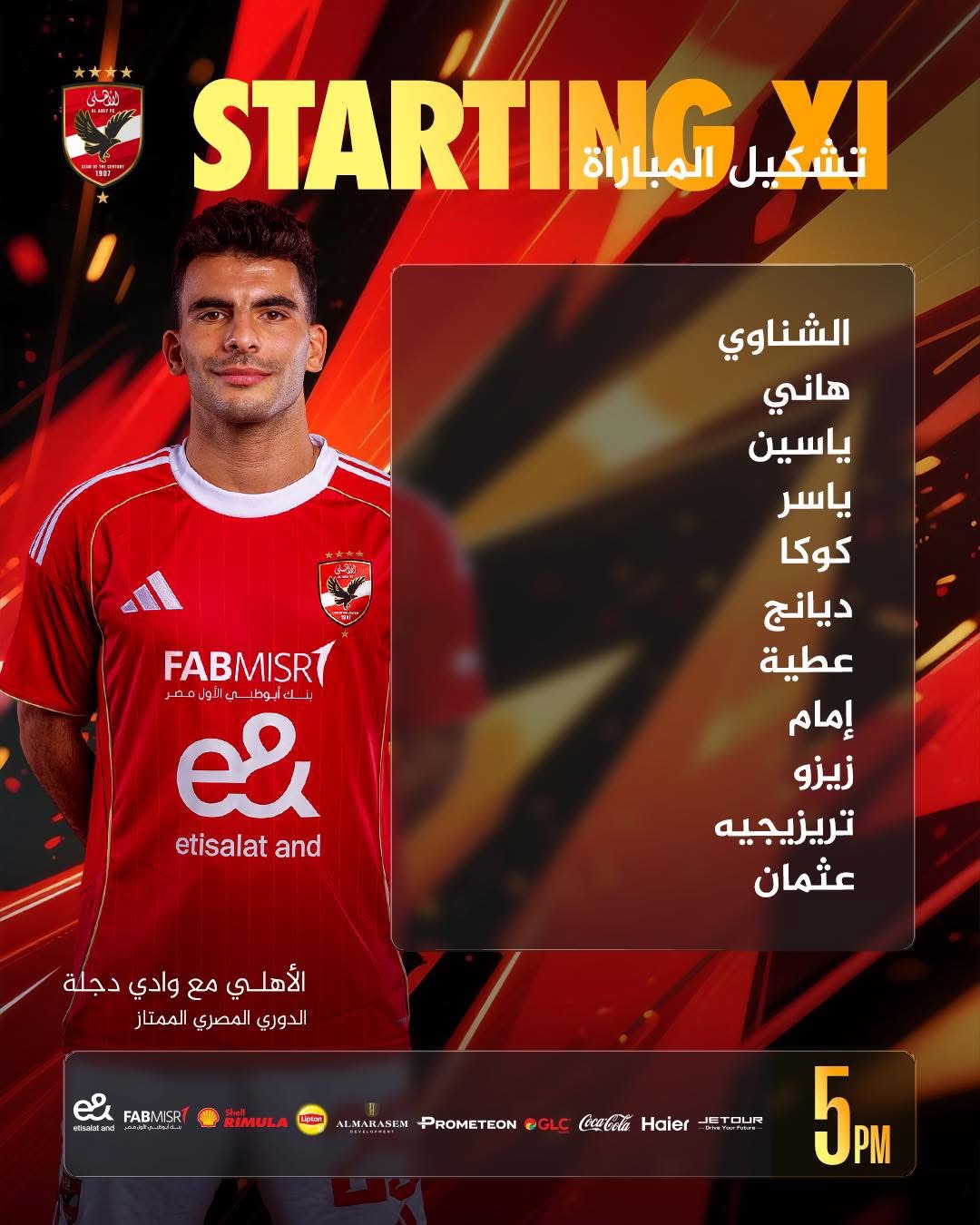 ويأتي تشكيل الأهلي لمواجهة وادي دجلة في الدوري كالتالي :